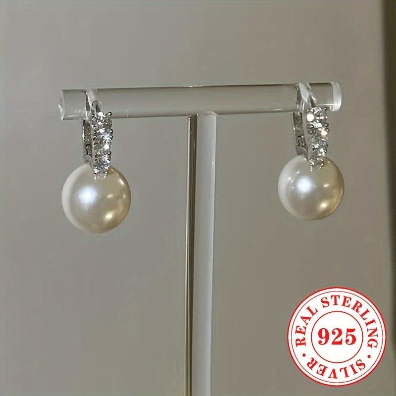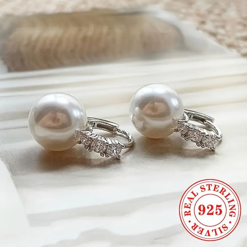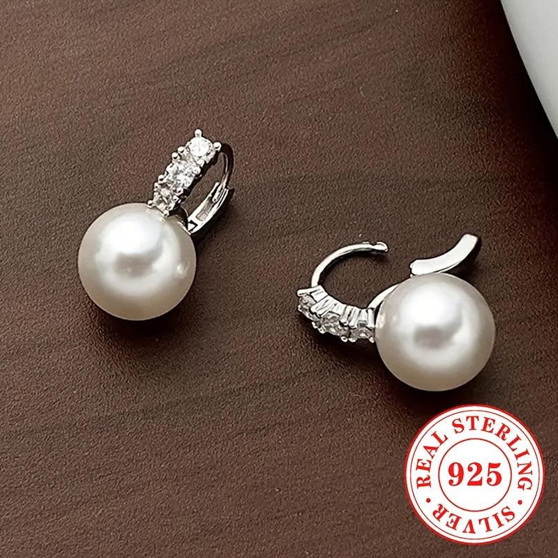 Elegant hoop earrings with imitation pearl drop, perfect for bridal, wedding, or banquet events. Made from 4g S925 sterling silver, these earrings exude a unique and classy temperament.