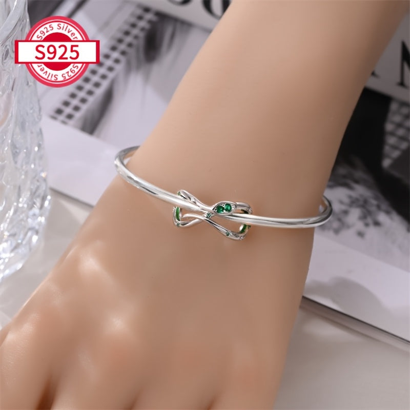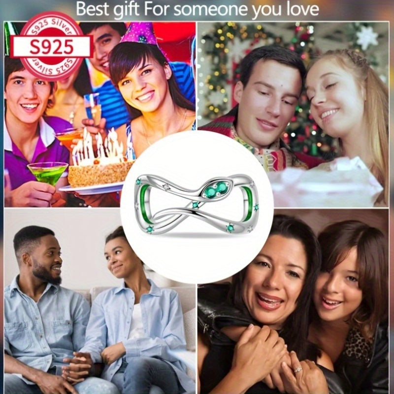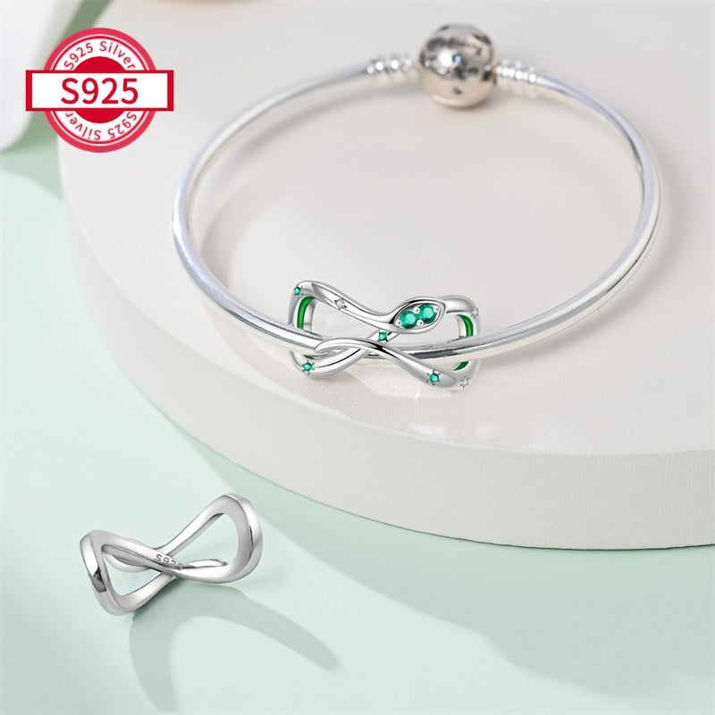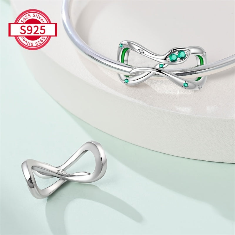This 925 sterling silver infinity knot ring with green accents is an ideal addition to any custom bracelet DIY project. It makes a perfect party gift for any occasion.