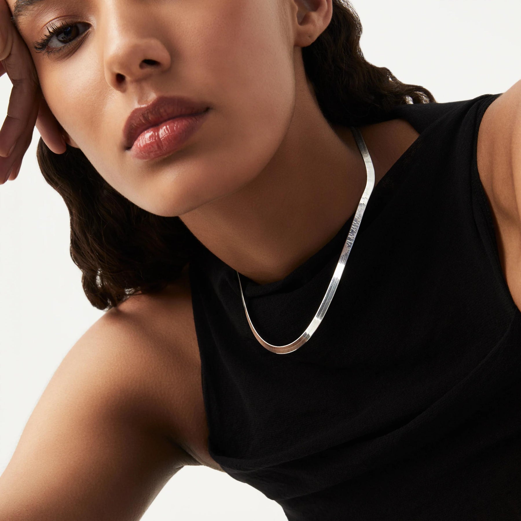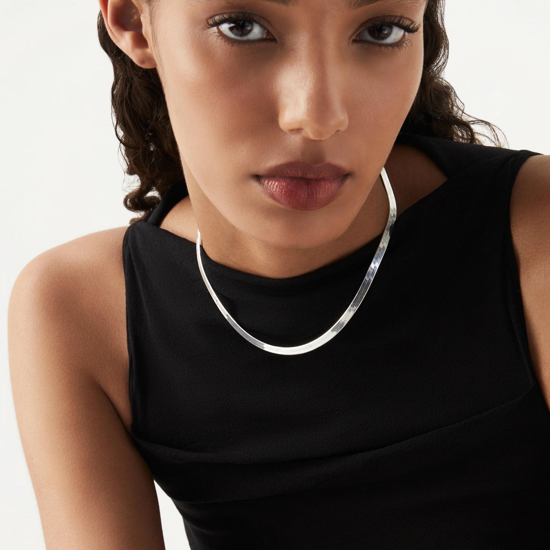 Elevate your style with this 925 sterling silver 5mm flat herringbone necklace that exudes hip hop flair. Perfect for Christmas and special occasions, comes in a boutique gift set.