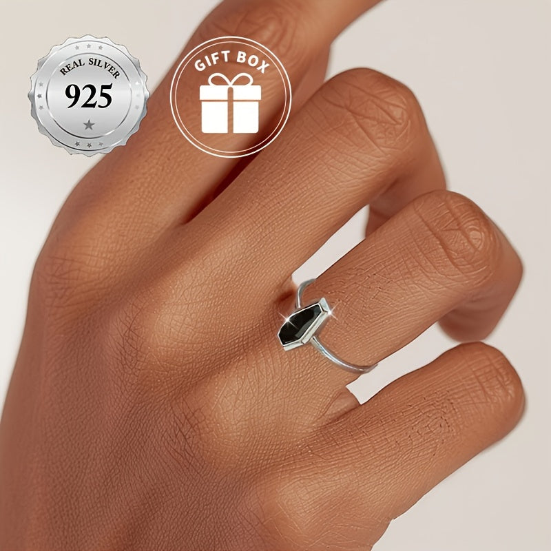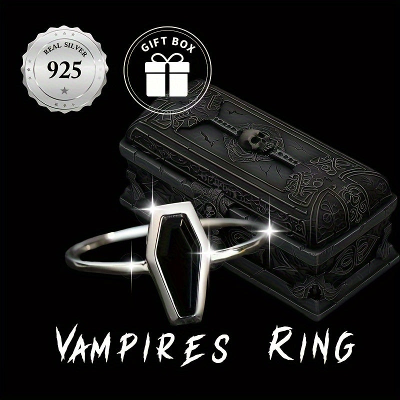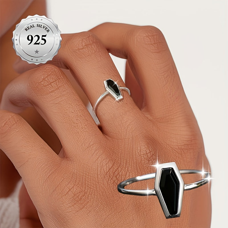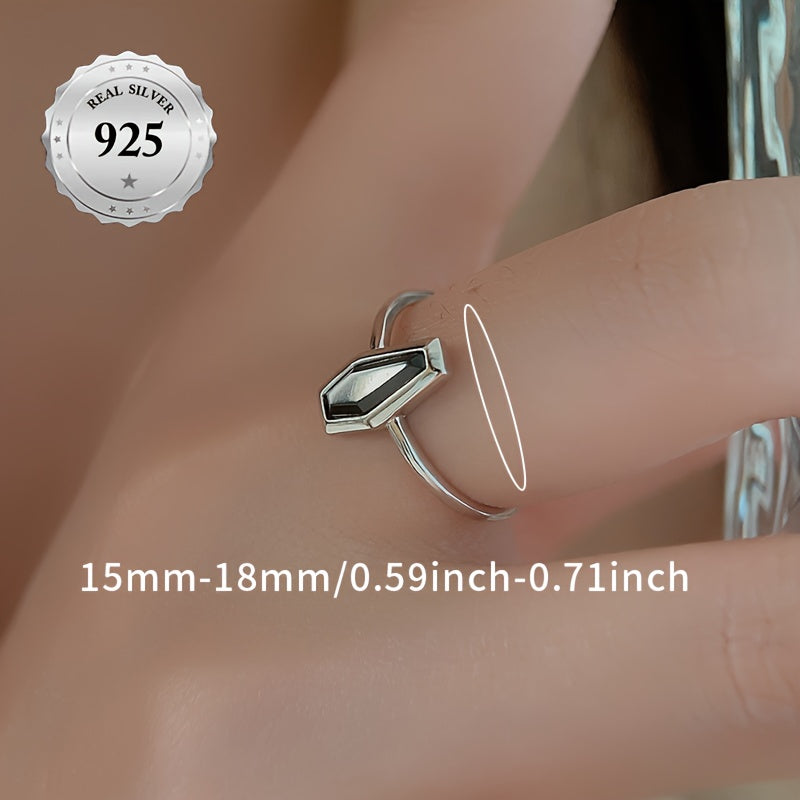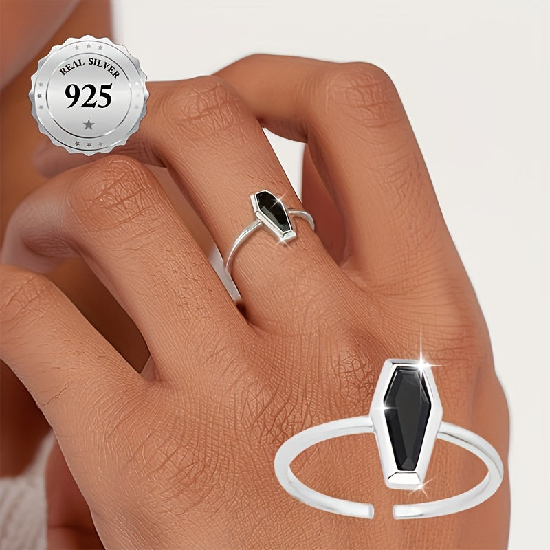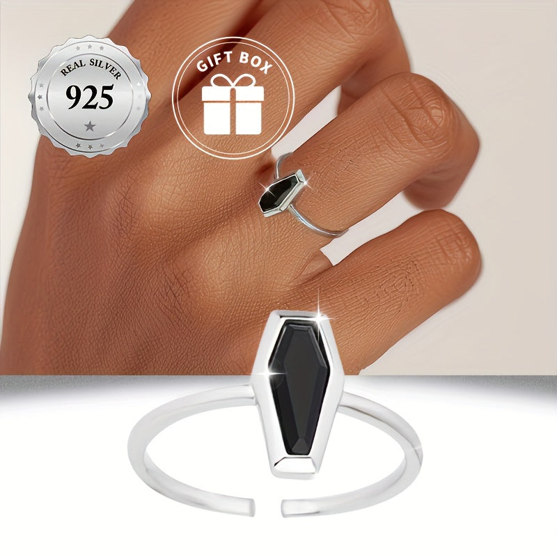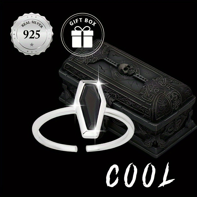 This adjustable 925 sterling silver ring features a gothic style coffin design with synthetic cubic zirconia, creating a fashionable and hypoallergenic accessory perfect for parties.