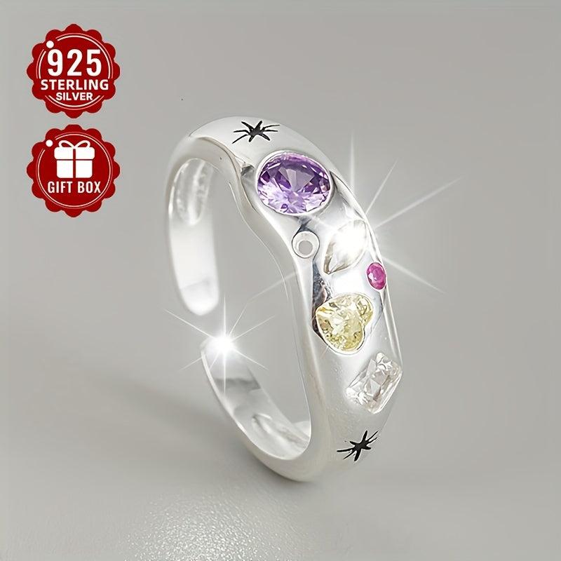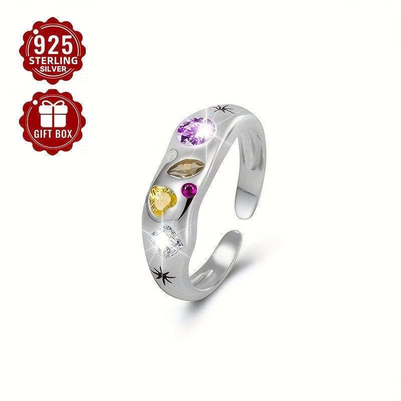 925 Silver Open Ring with Colorful Zirconia Geometric Design