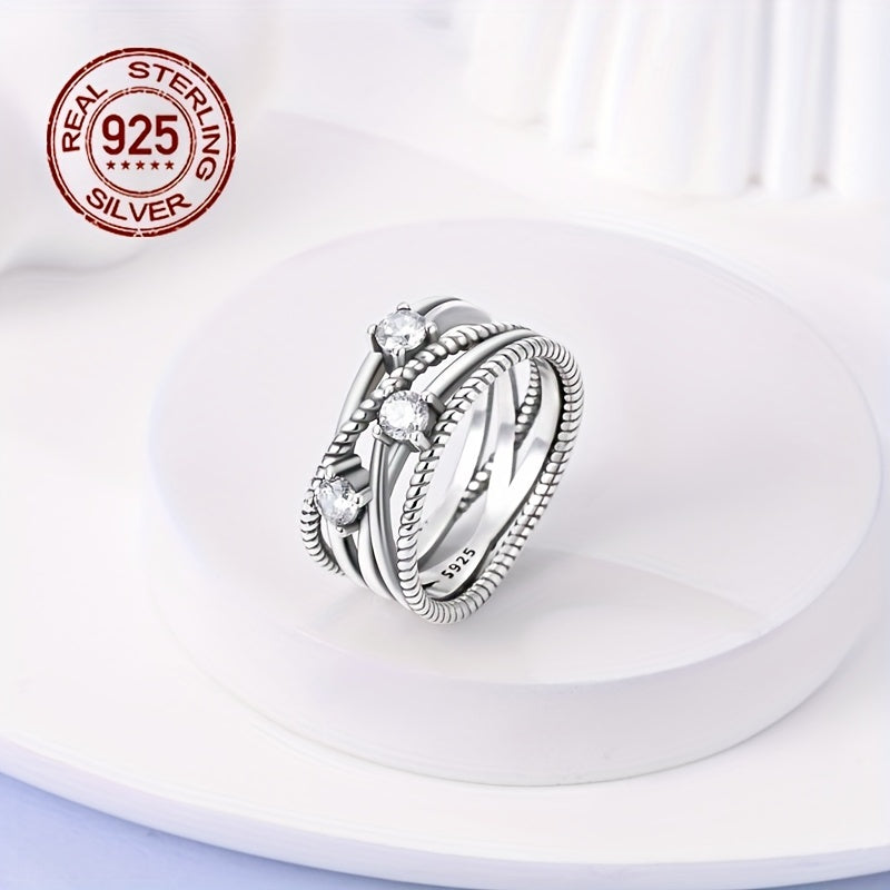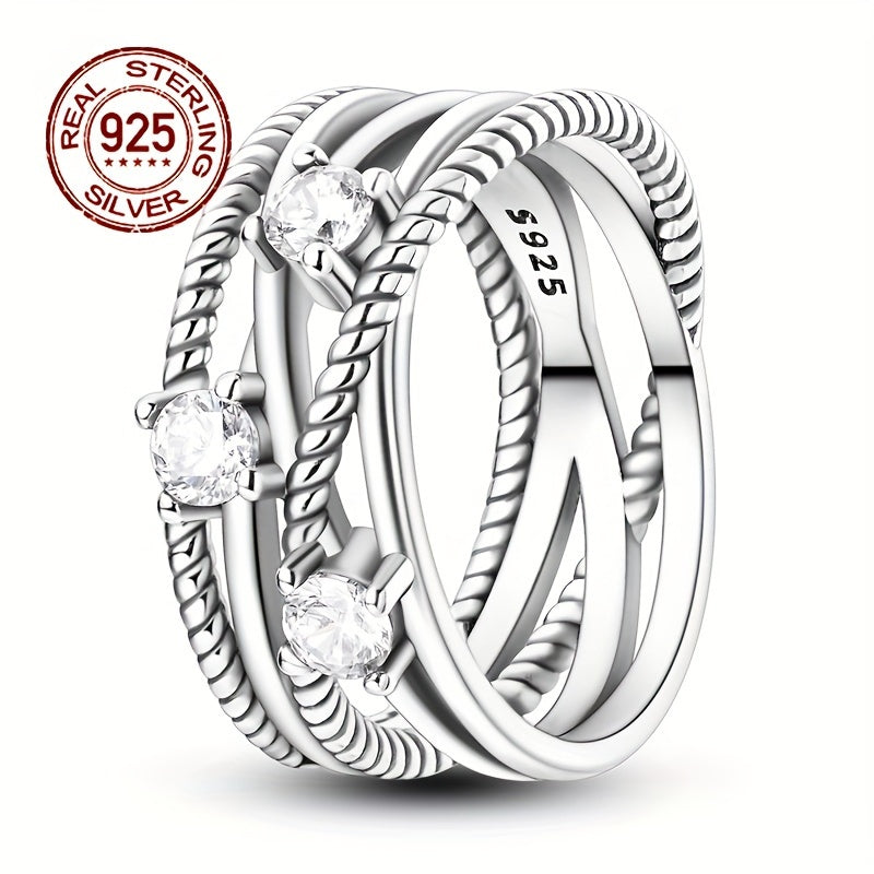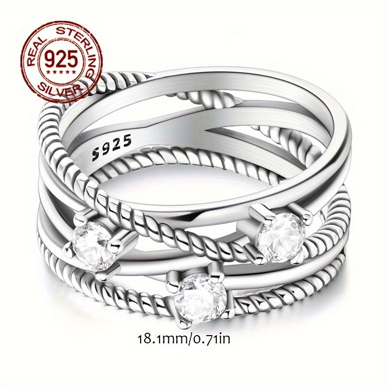 This beautiful 925 sterling silver ring features sparkling zirconia stones set in an intertwined lines design. Perfect for weddings, parties, or everyday wear. Makes an ideal gift for birthdays, Christmas, or any special occasion.