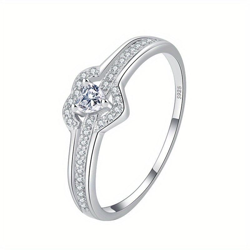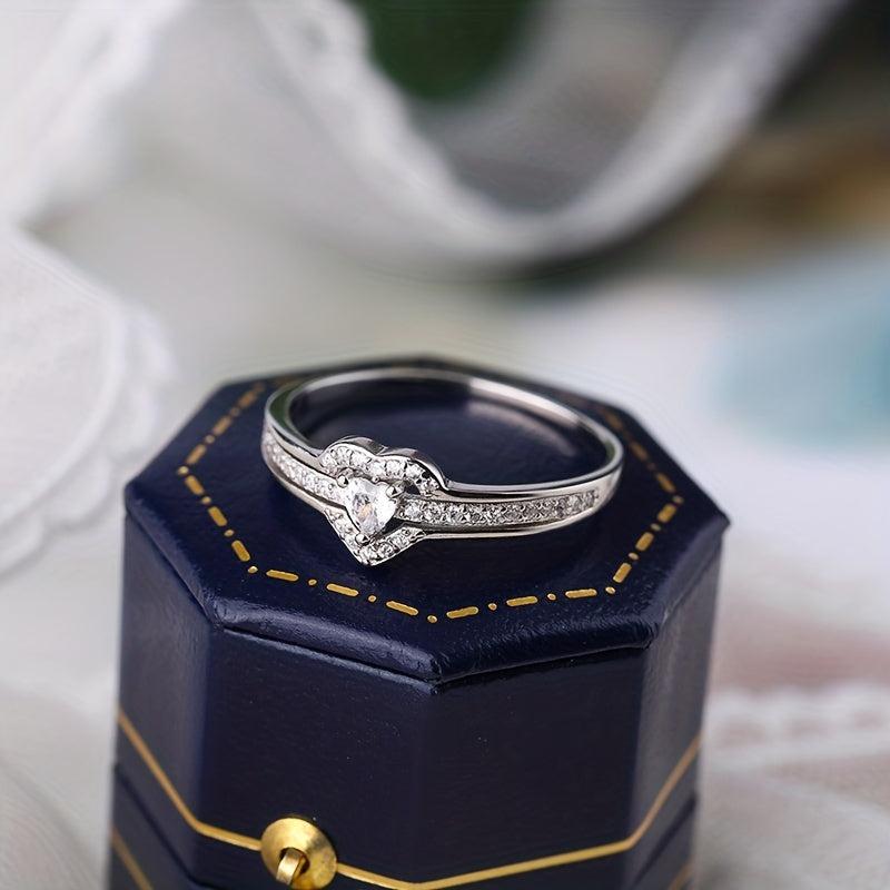This 925 sterling silver ring features a double heart design with cubic zirconia stones, making it perfect for daily wear or as a gift. The geometric, celestial symbol theme adds a unique touch to this ring.
