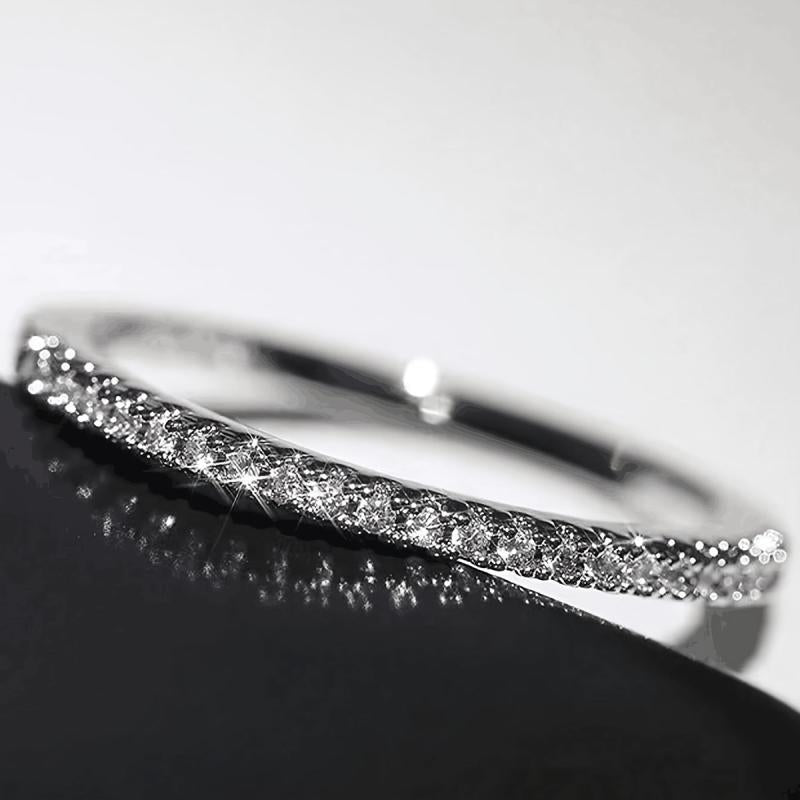 This stunning 925 sterling silver ring features a line of sparkling zirconia stones, making it ideal for engagement or wedding. Show your love with this elegant and timeless piece.