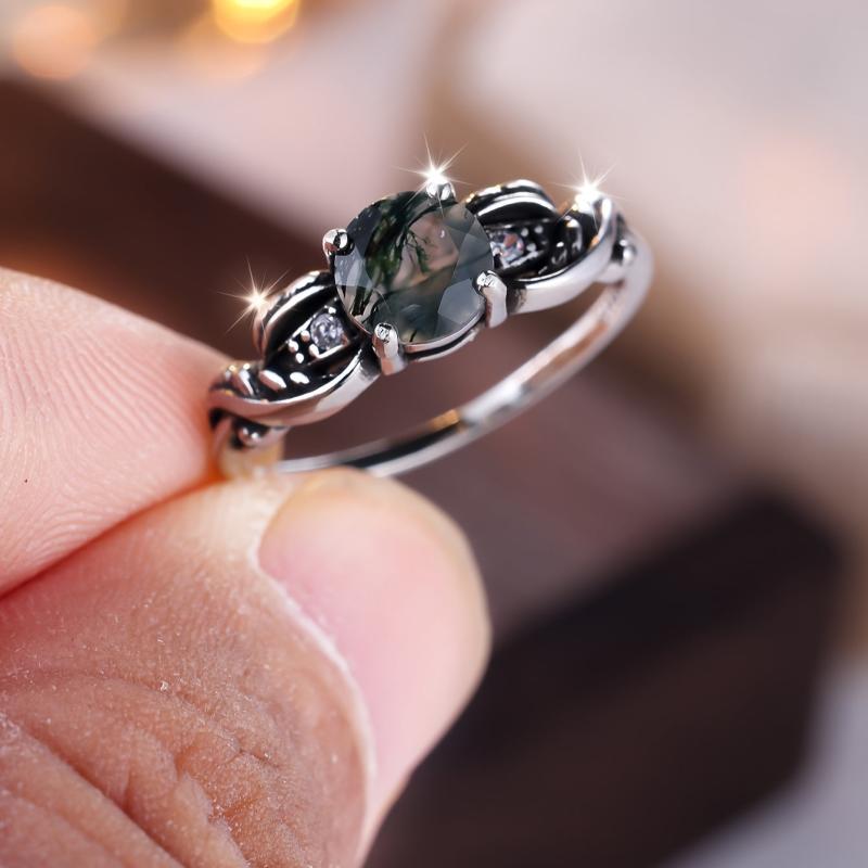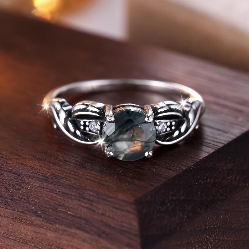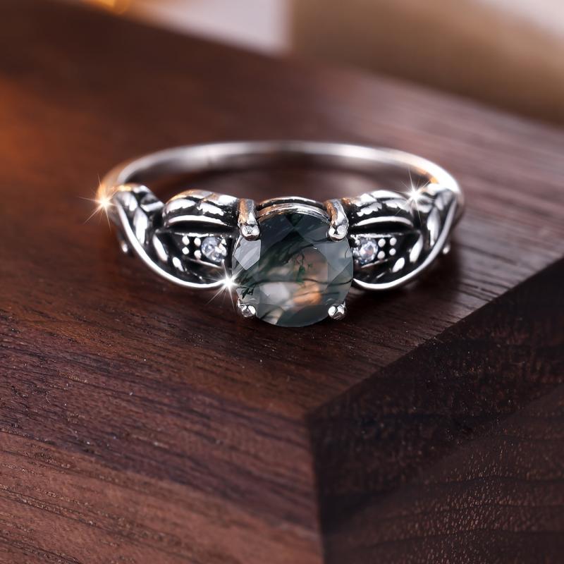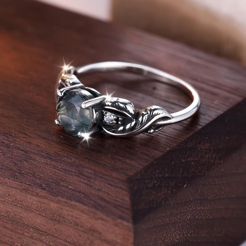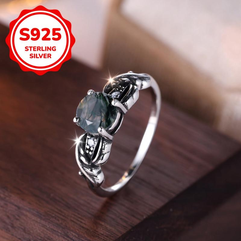 Capture hearts with this 925 sterling silver ring featuring a green water grass agate stone in a classic four-claw setting for women's engagement and wedding occasions.
