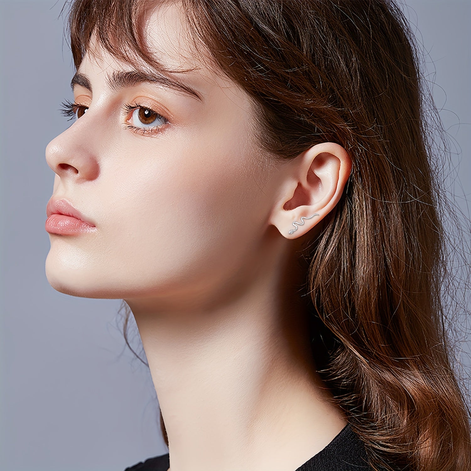 These stylish snake earrings are crafted from high-quality 925 sterling silver. They feature a unique climber design that adds a touch of elegance to any outfit. A perfect gift for women who love animal-themed jewelry.