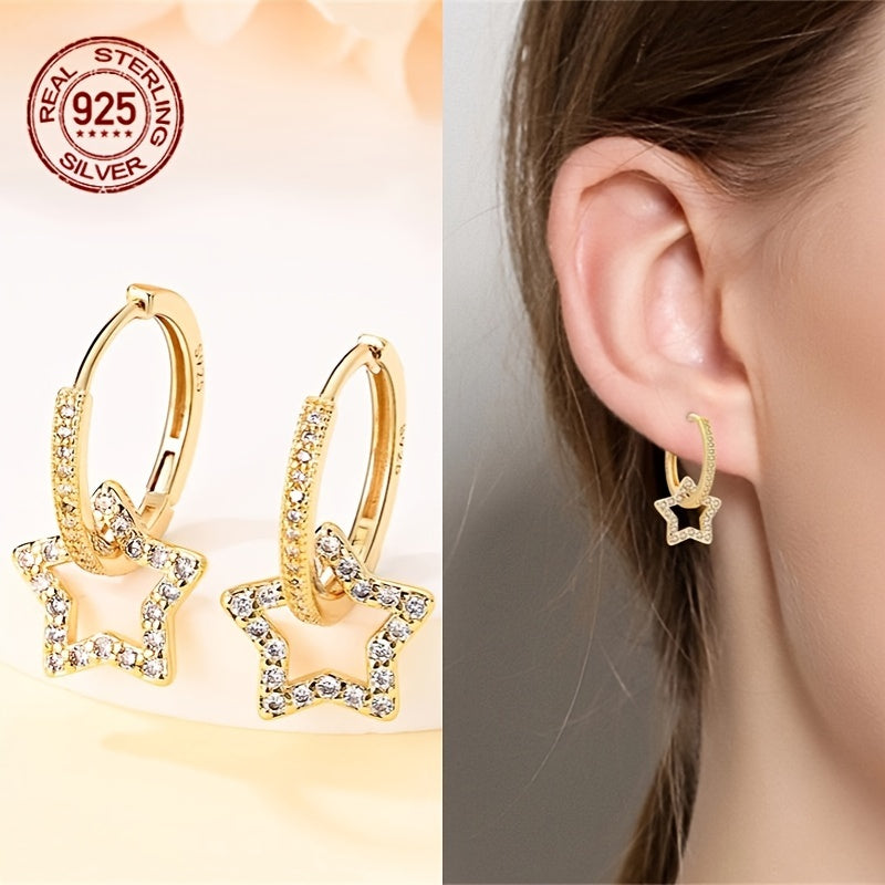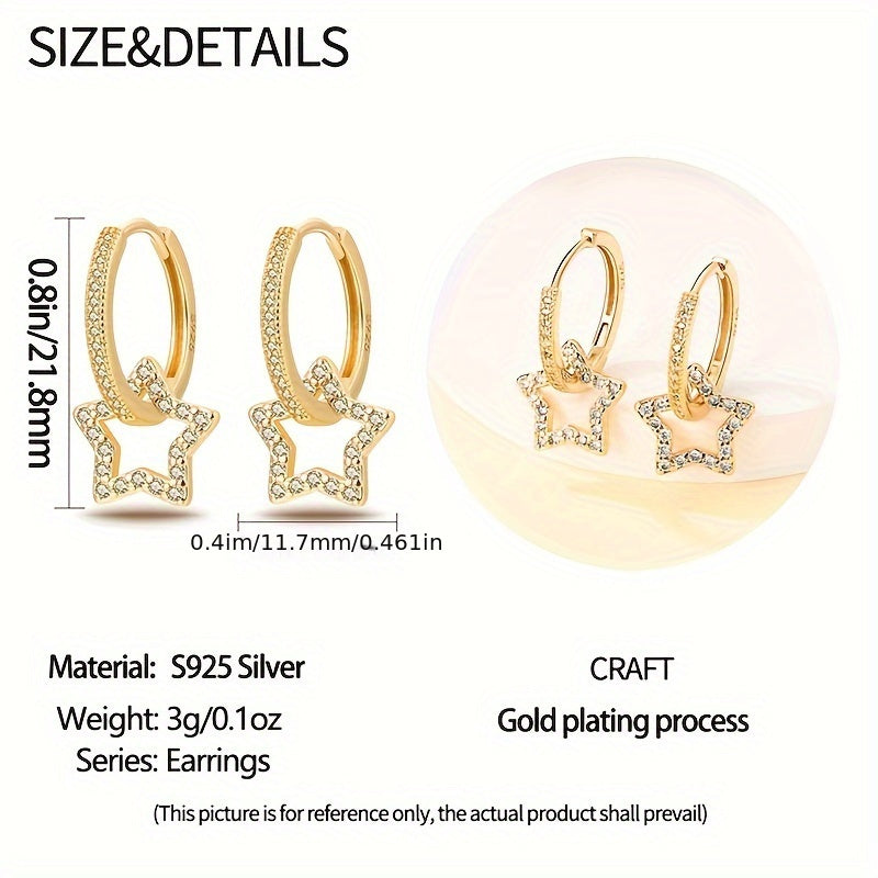 Add a touch of celestial charm to your look with these 925 sterling silver star pendant earrings. Perfect for daily wear and parties with a bohemian flair.