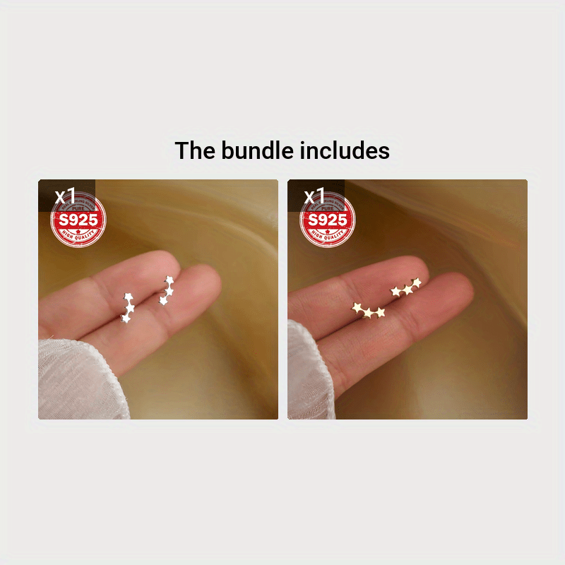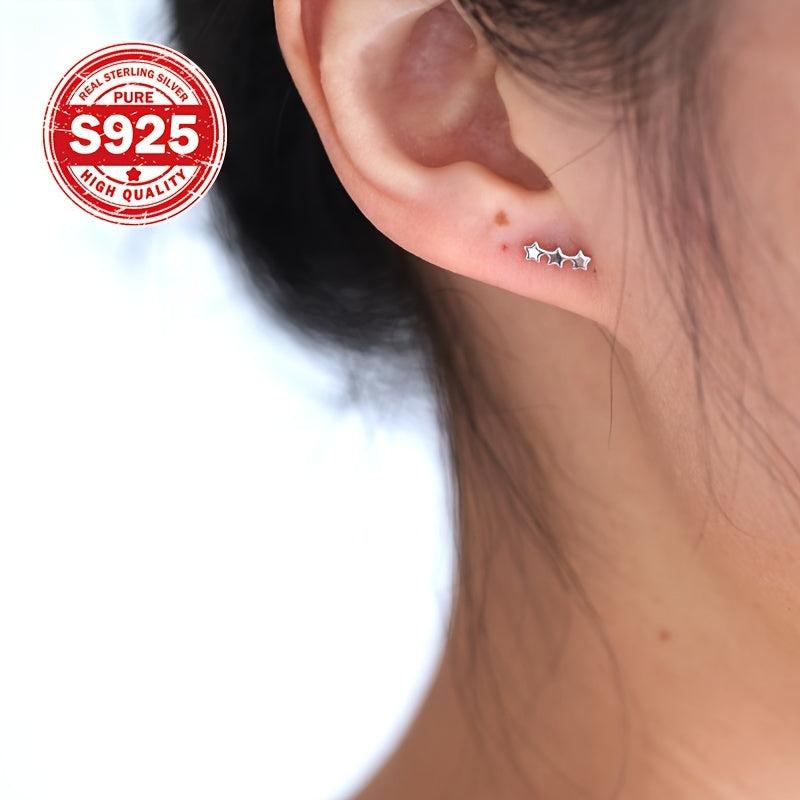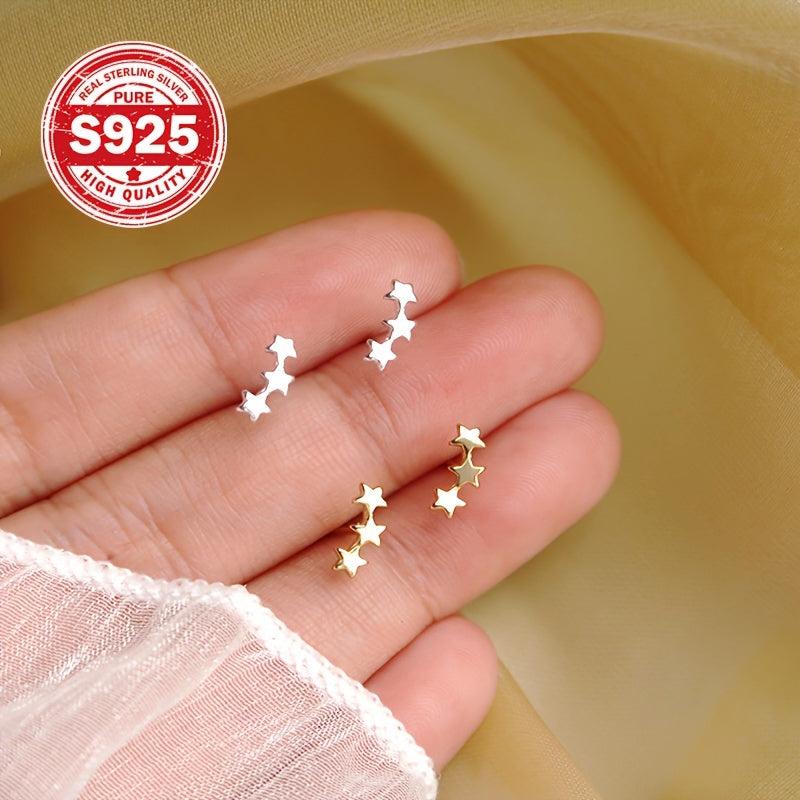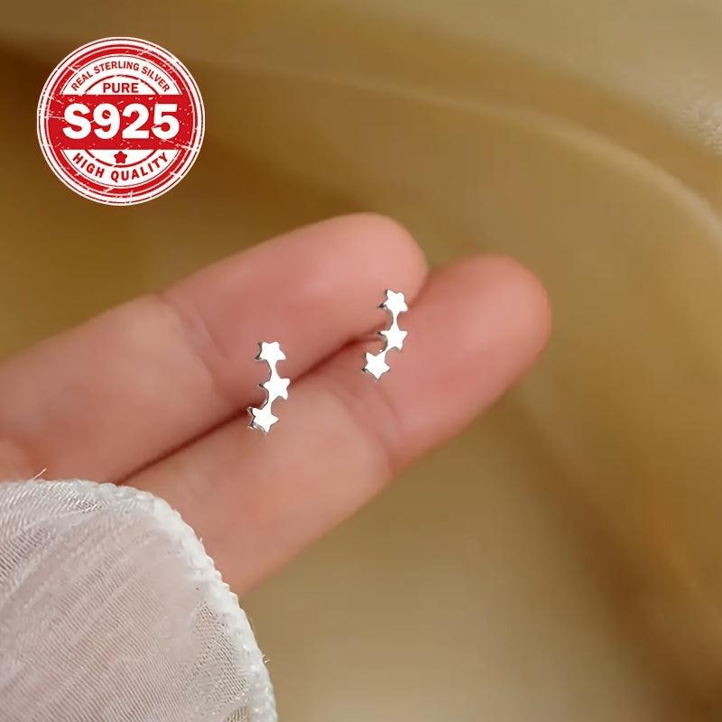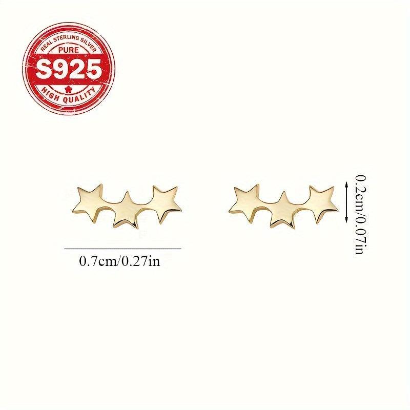 Elegant 925 silver earrings with three small stars. Minimalist studs perfect for daily wear.