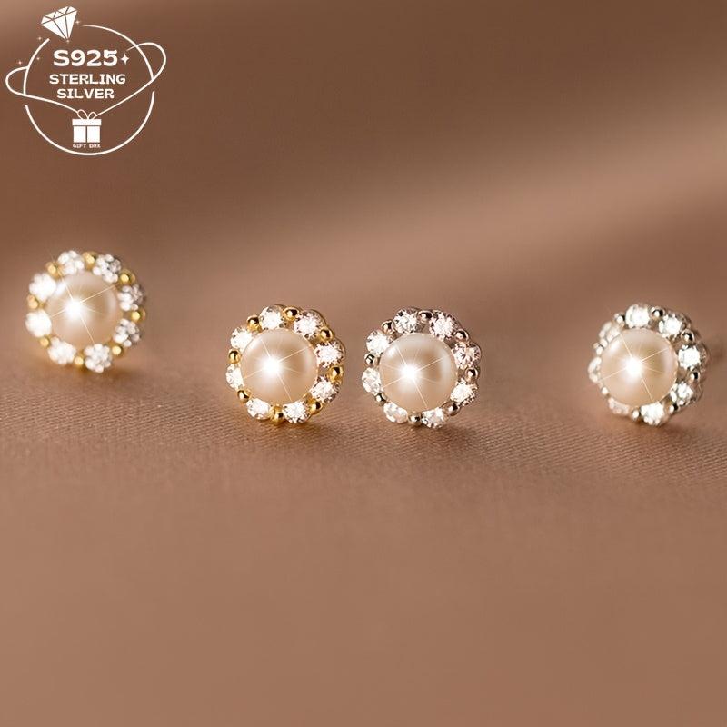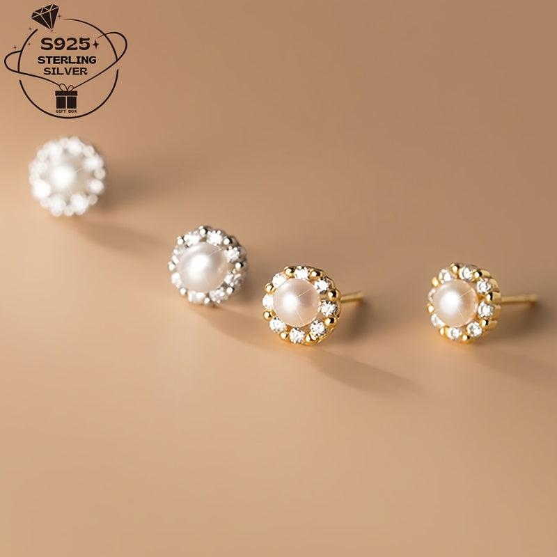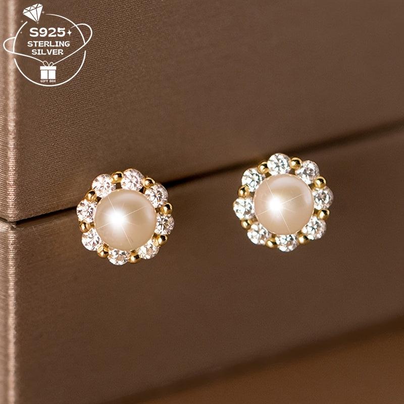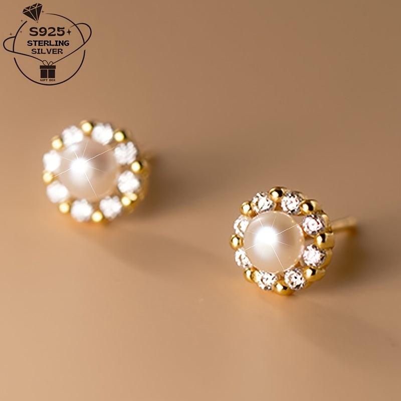 Add a touch of elegance to your outfit with these vintage earrings. Crafted from 925 silver, they feature imitation pearls and synthetic zircons for a luxurious look.