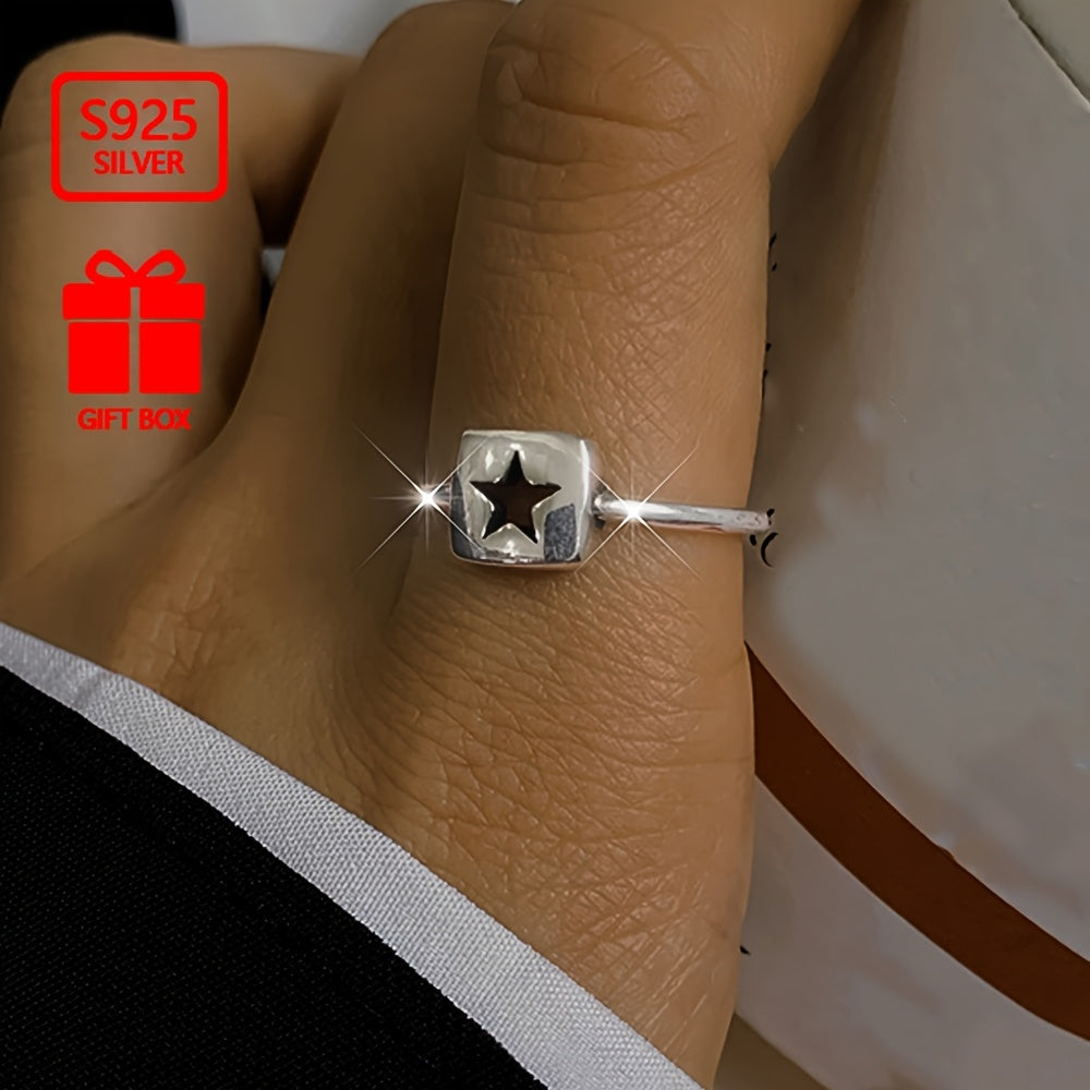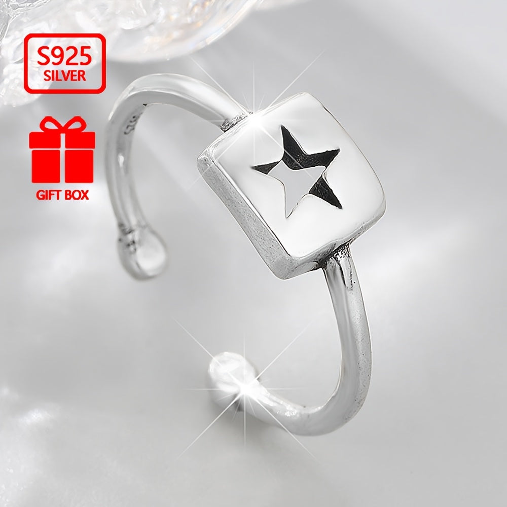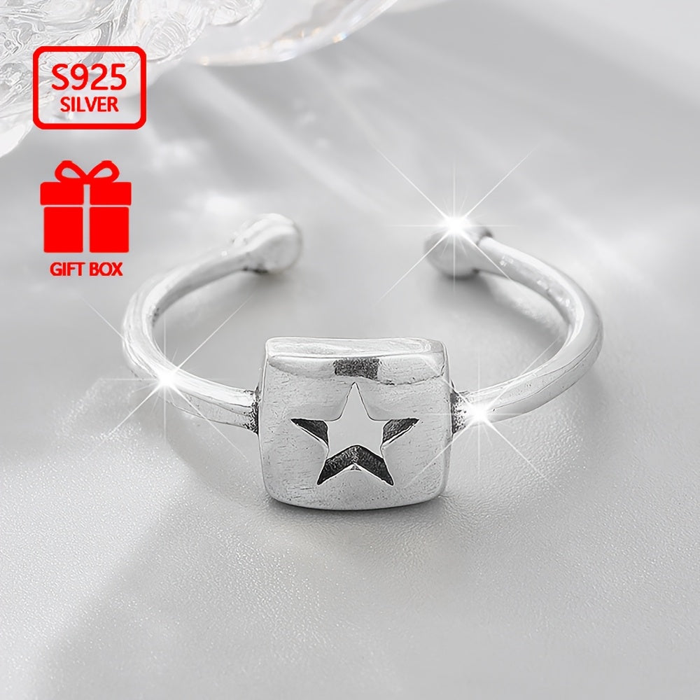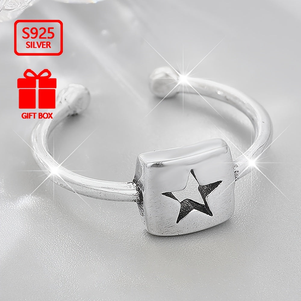 Add a touch of personality to your look with this vintage square star open ring. Made of 925 sterling silver, it's perfect for parties or vacation activities.