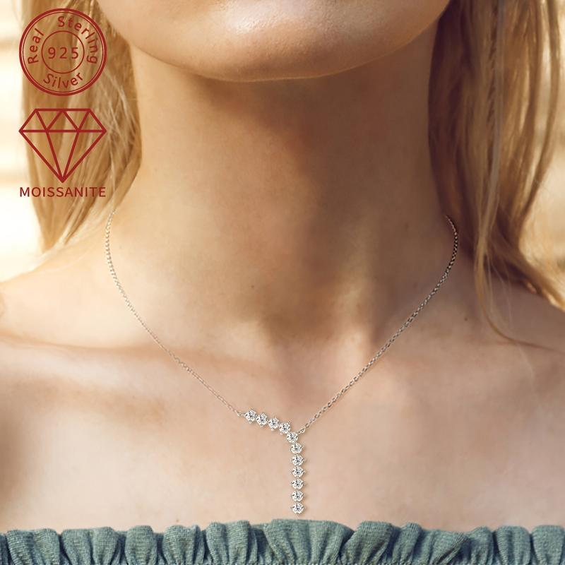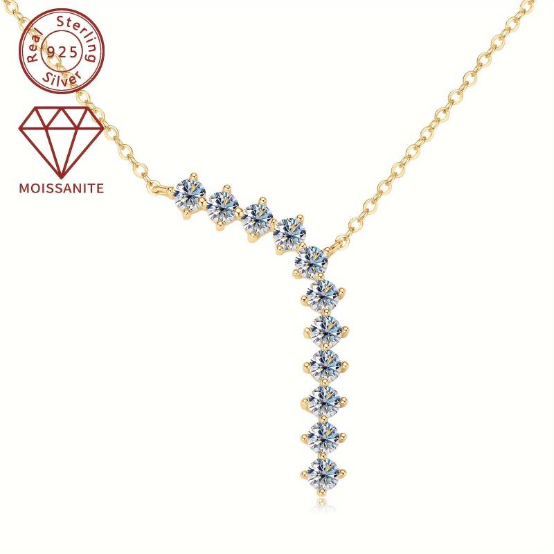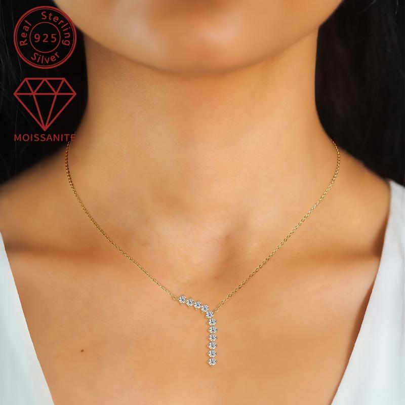 Elegant women's necklace with 3mm round Moissanite stones on a 52cm chain.