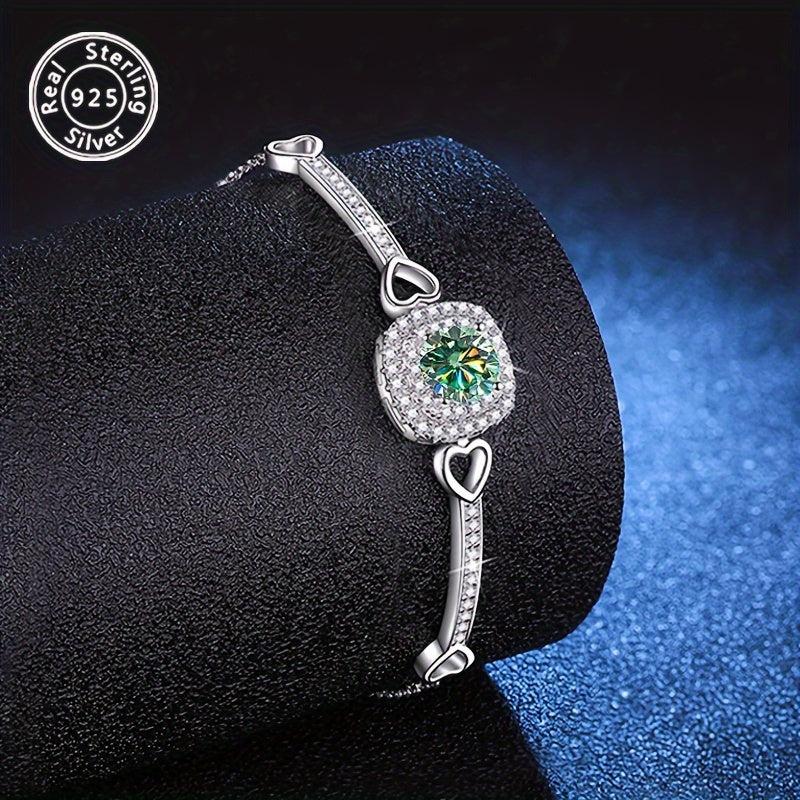 This stunning bracelet features a 1 carat moissanite set in 925 pure silver. Perfect for engagement, wedding, Halloween, or Christmas, this dazzling piece of jewelry will make any woman shine.
