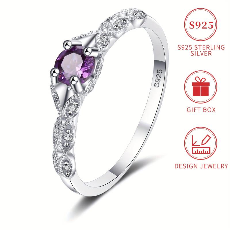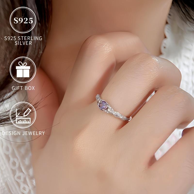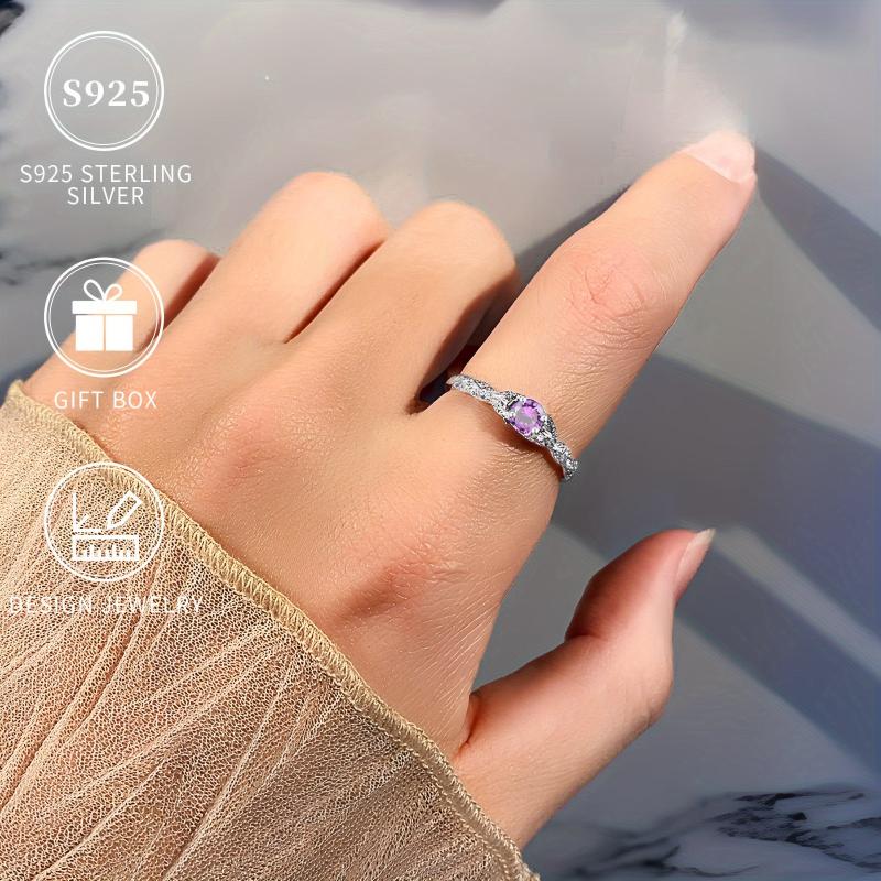 This elegant ring features a 925 pure silvery band with a beautiful purple gemstone, making it perfect for brides and daily wear. The hypoallergenic and nickel-free design ensures comfort and durability.