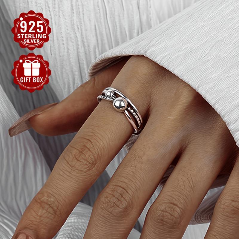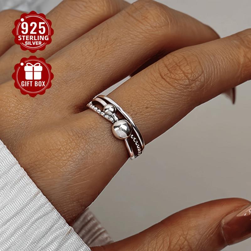 This 925 pure silver ring features a cross hollow design with a small round ball, suitable for daily wear. It is low sensitivity and perfect for men and women.