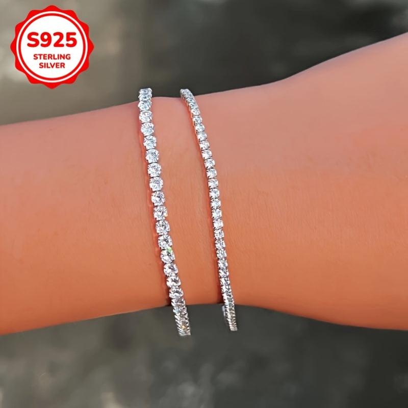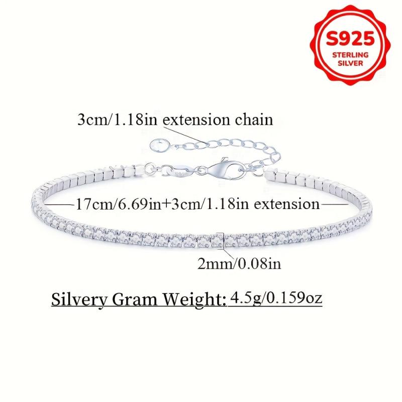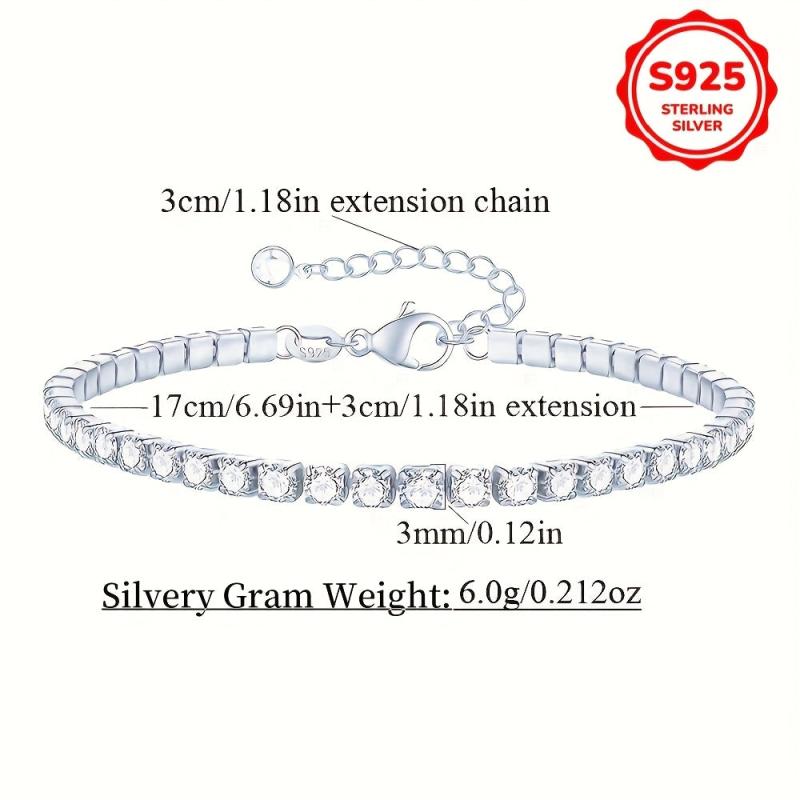 This exquisite bracelet is made of 925 sterling silver with glitter broken design and adjustable size. It features dazzling round zirconia stones, perfect for women and girls. Hypoallergenic and stylish, it adds a touch of elegance to any outfit.