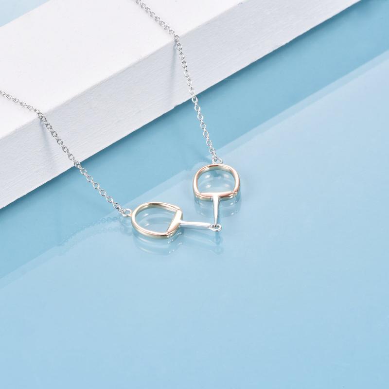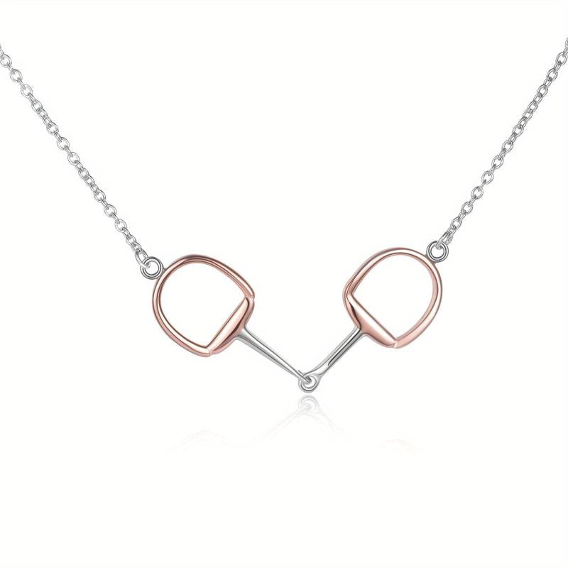 Elegant horse bridle pendant necklace crafted from 925 sterling silver with a rose golden finish, perfect gift for horse lovers.