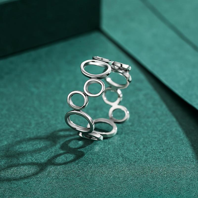 925 Sterling Silver Irregular Round Finger Ring Statement Jewelry for Women