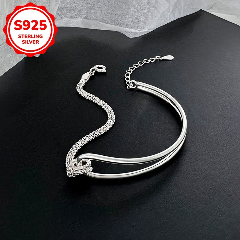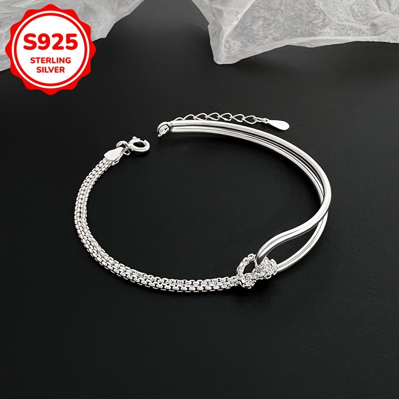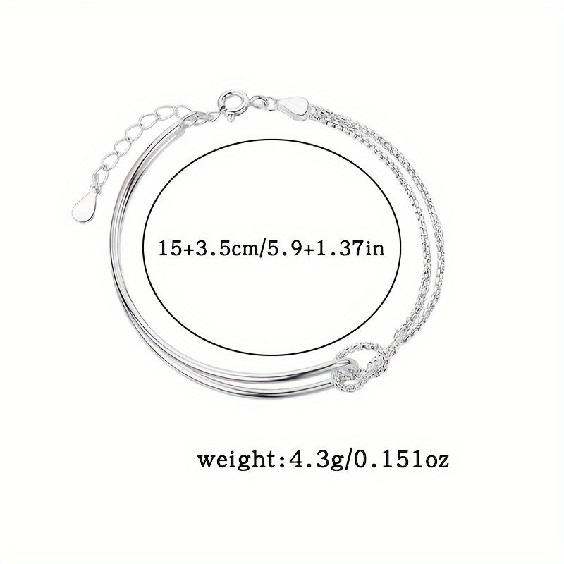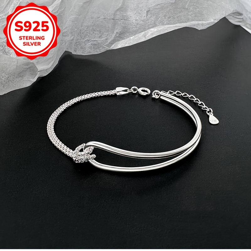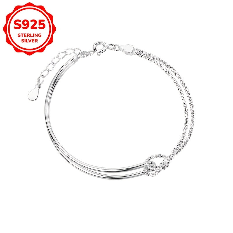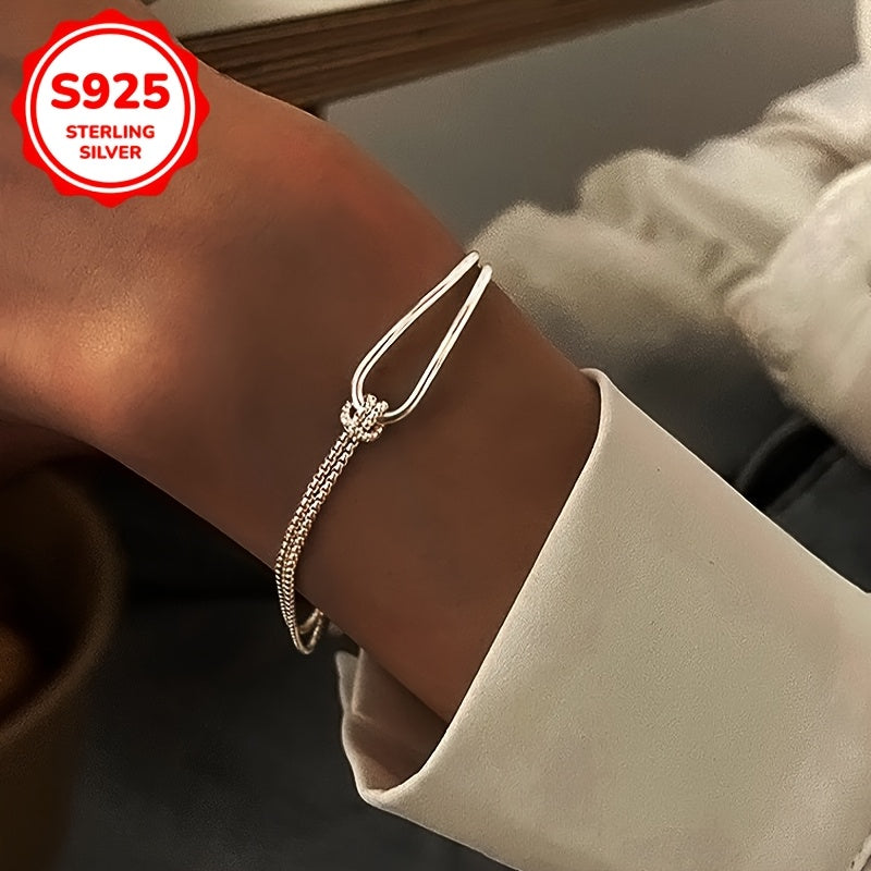 Add a touch of elegance to your casual attire with this double-layered knot bracelet. Made from high-quality 925 sterling silver, this bracelet is perfect for everyday wear and makes a great gift for a loved one.