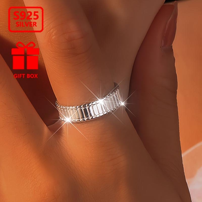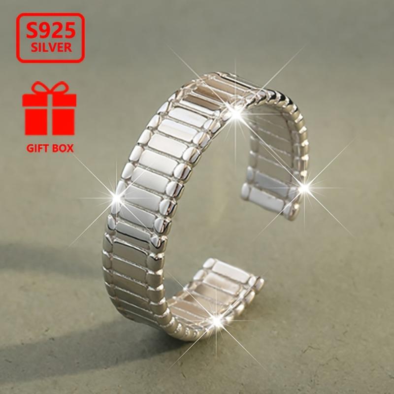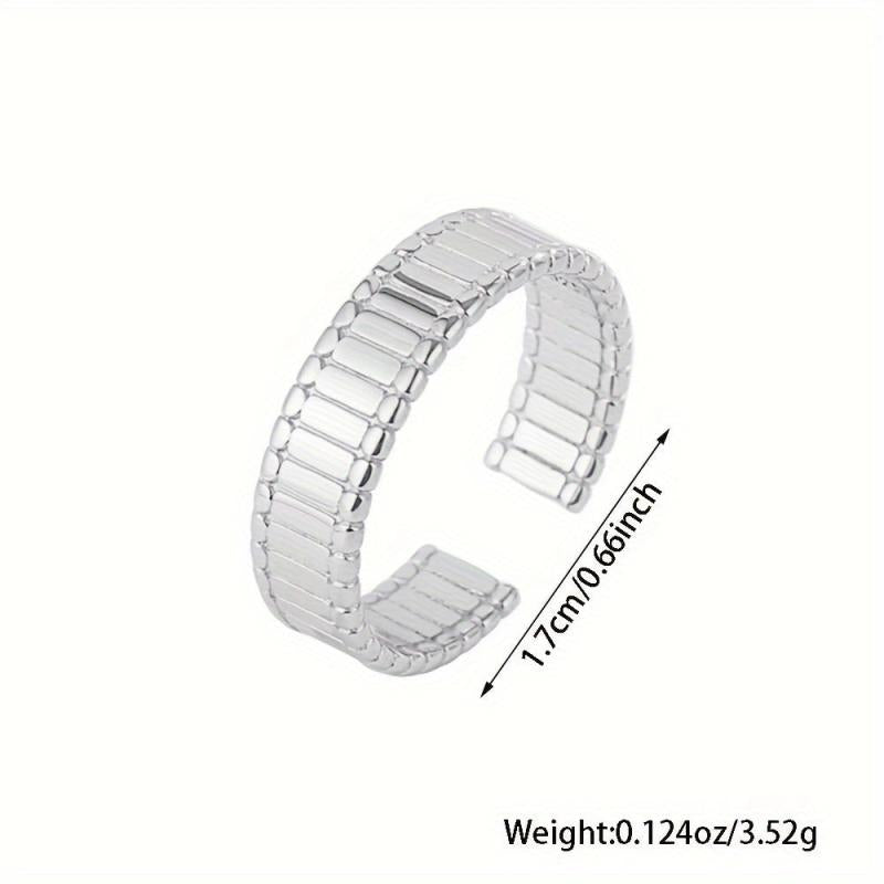 This open ring is made of 925 pure silver with an irregular geometric striped design. Adjustable size suitable for daily wear, travel, and parties.
