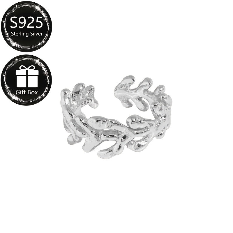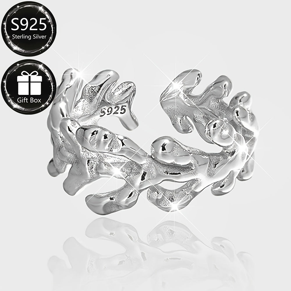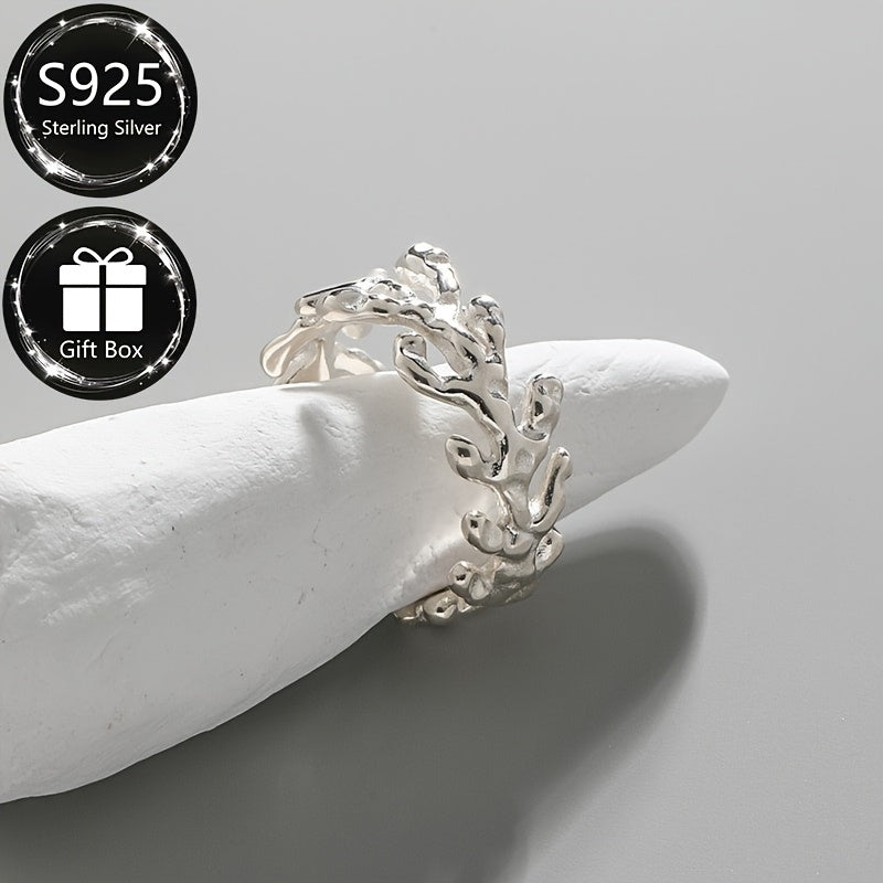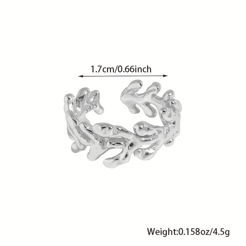 This stylish open ring is made of 925 sterling silver with a fashionable coral bone design. It is suitable for parties and makes a great gift.