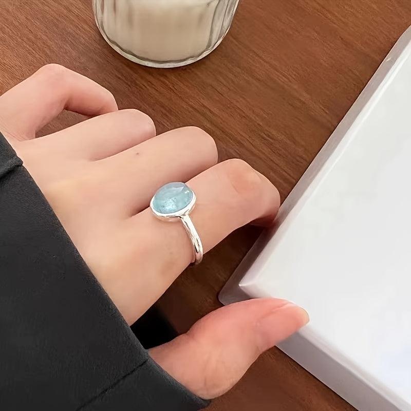 This stunning open ring is made of 925 sterling silver with rhodium plating and features a synthetic sapphire. It is hypoallergenic, weighing only 2g, and is perfect for daily wear or as a gift.
