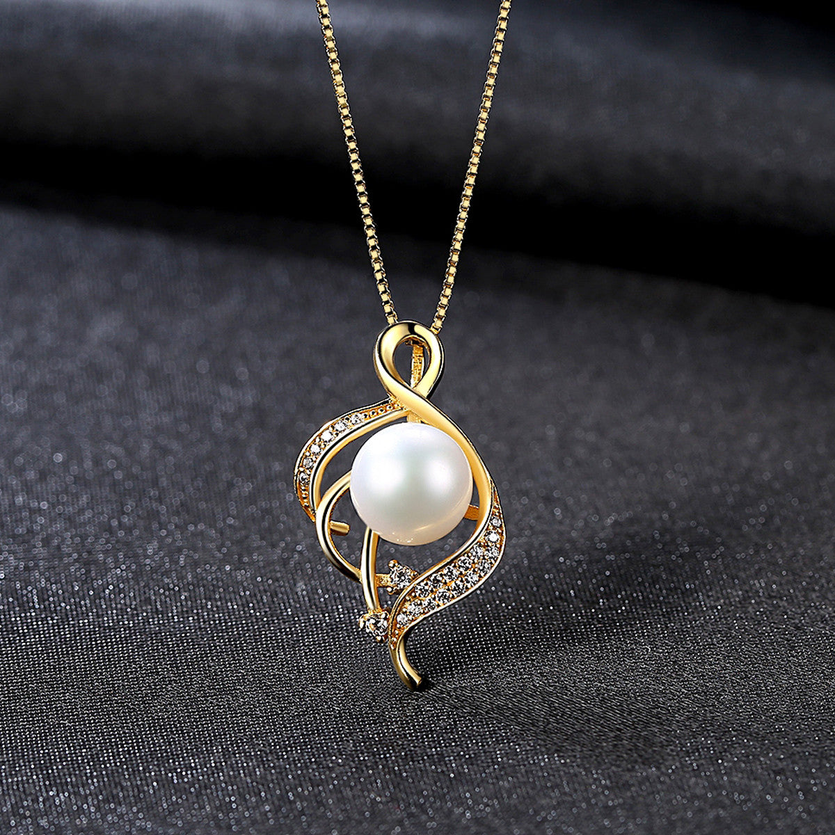Elegant 925 sterling silver necklace featuring a natural freshwater pearl and sparkling rhinestone accents. Perfect for daily wear, this boho style jewelry adds a touch of sophistication to your look.