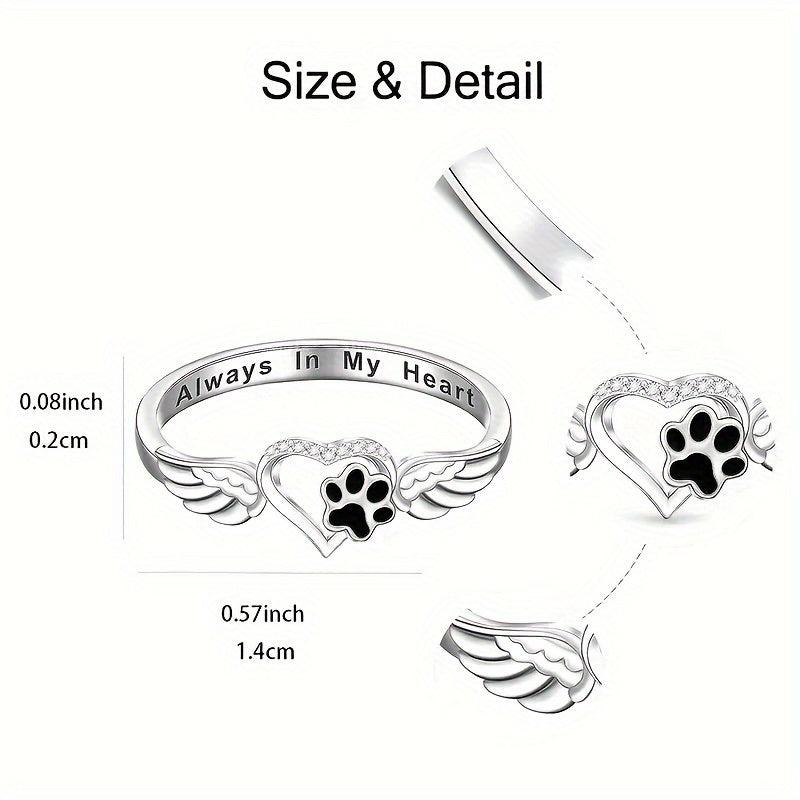 This cute ring features a heart and pet claw wing design with sparkling zirconia inlays. It's perfect for daily wear and makes a great gift for anyone.