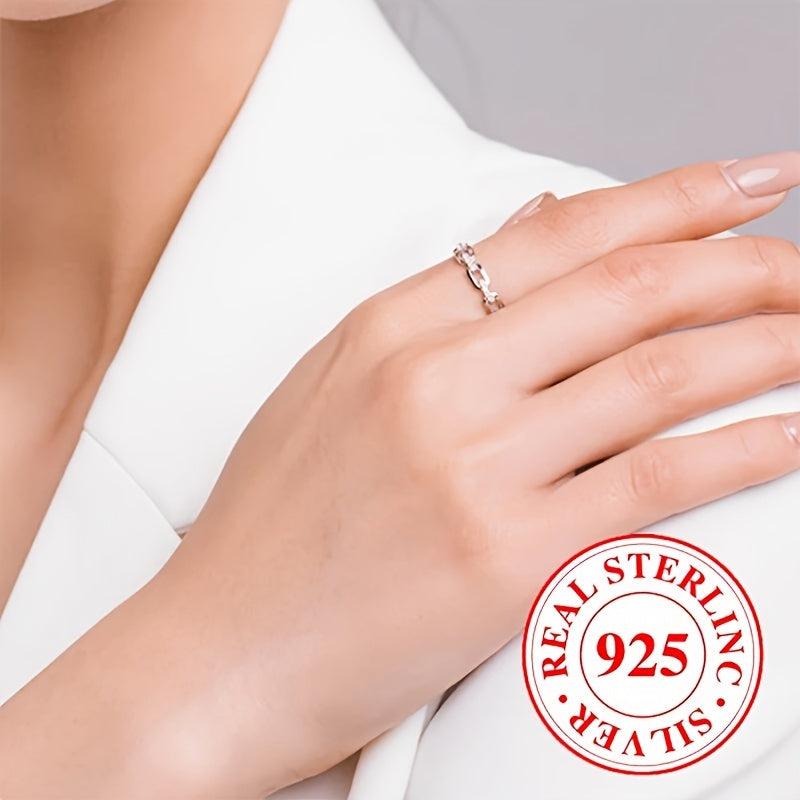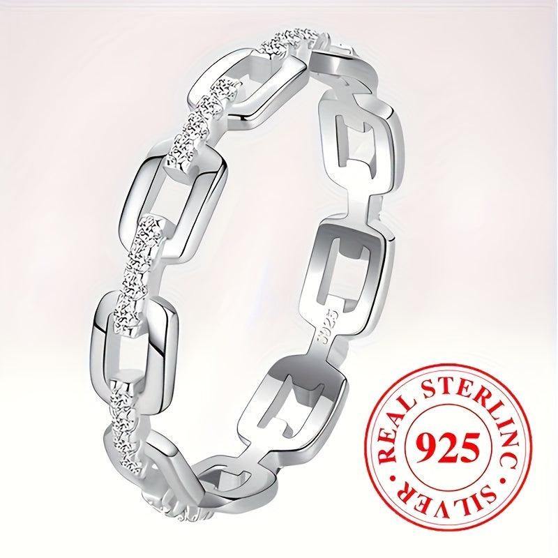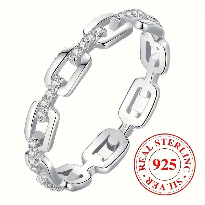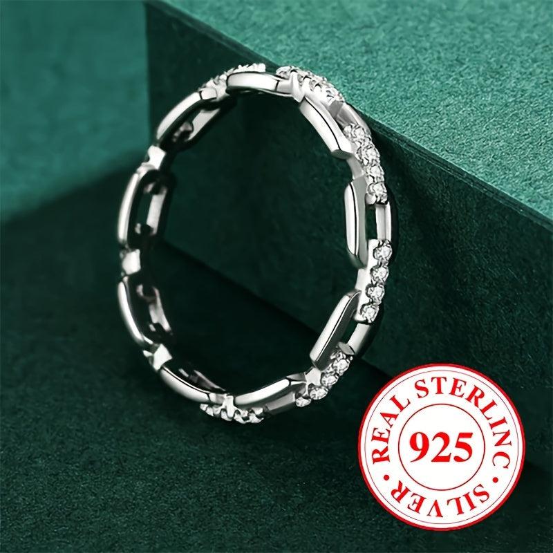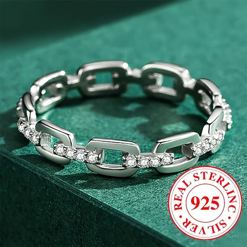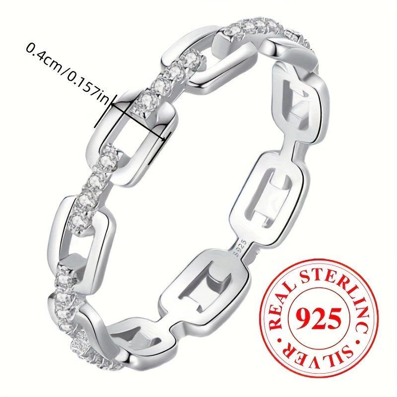 This stylish chain shaped ring features zirconia stones, weighing 2.6 grams, made of 925 sterling silver. Ideal for daily casual wear for both men and women.