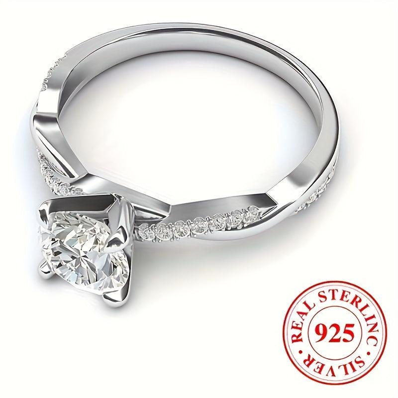 This elegant ring features a round zirconia stone set in a classic 4-prong design. Made of 925 sterling silver, it weighs 2.6 grams and is ideal for engagements, weddings, proposals, or as a romantic gift.