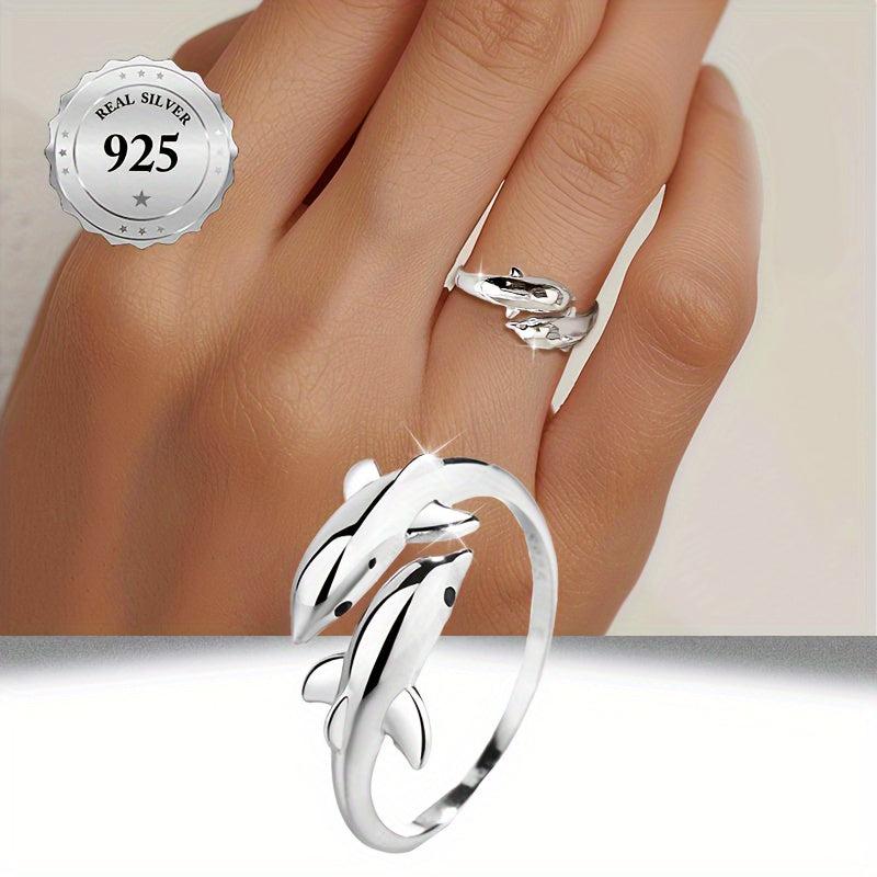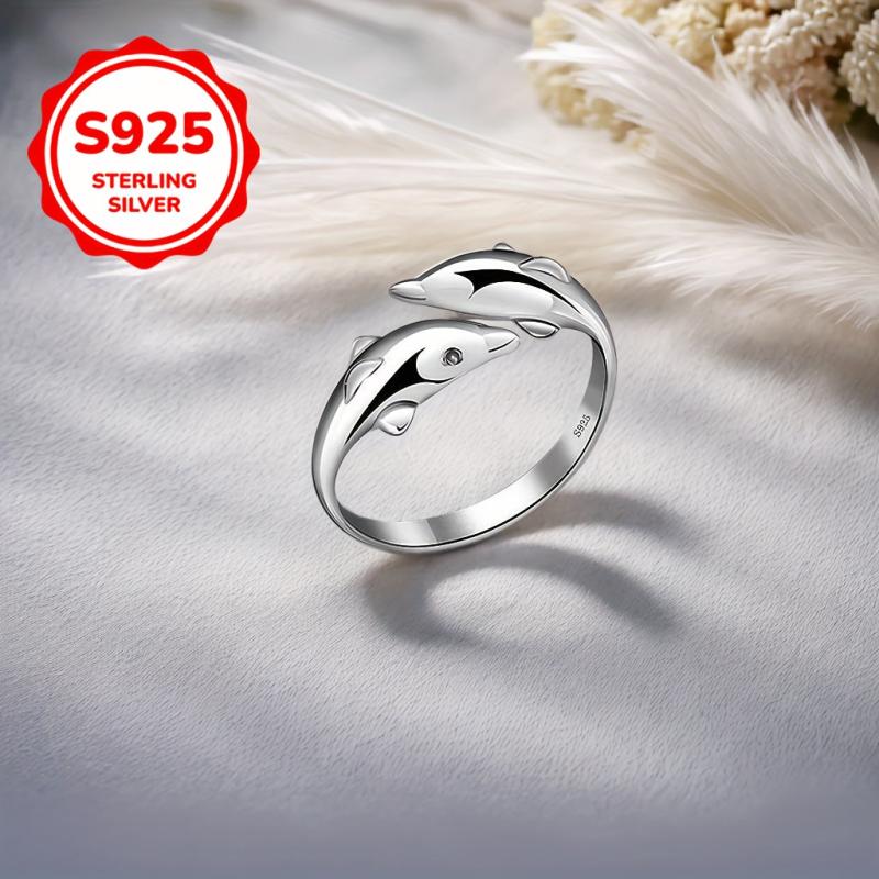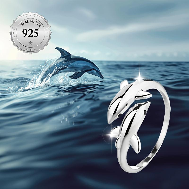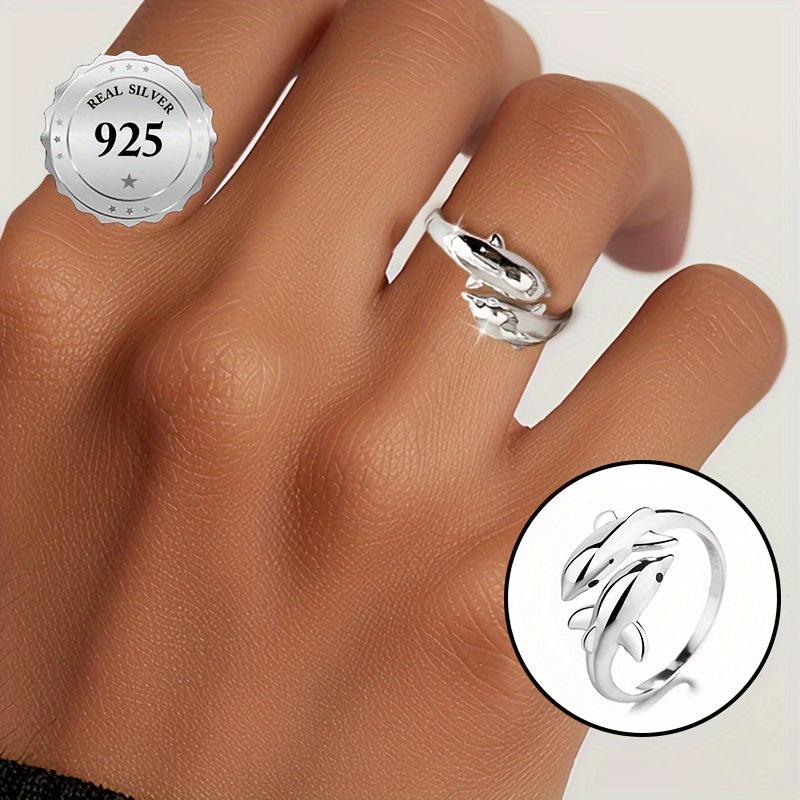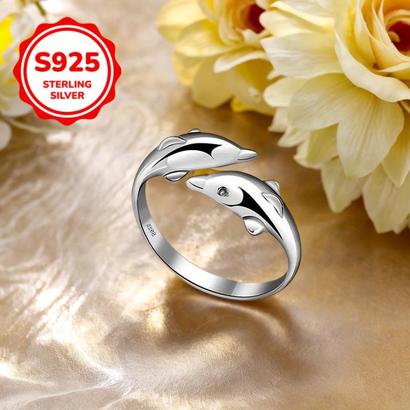 Elegant open ring for women with dolphin and ocean design made of high-quality S925 silver. This versatile ring is perfect for parties, gatherings, travel, or daily wear.