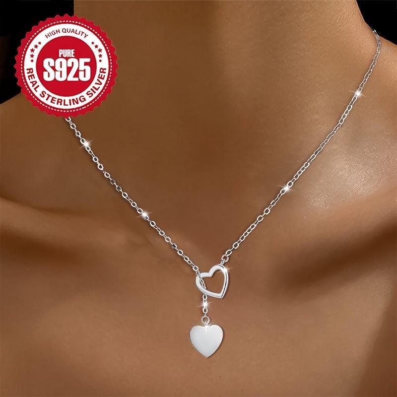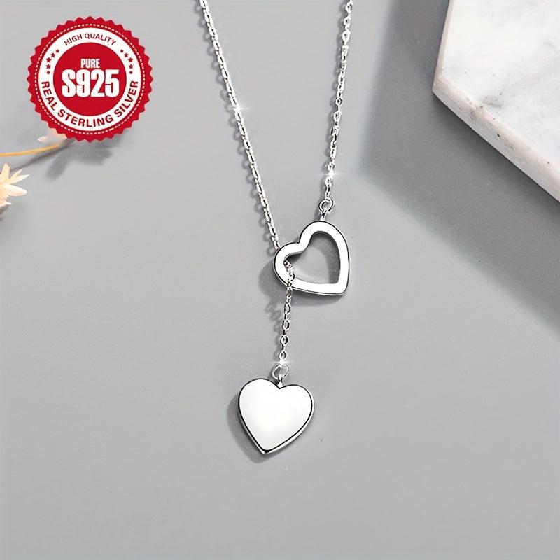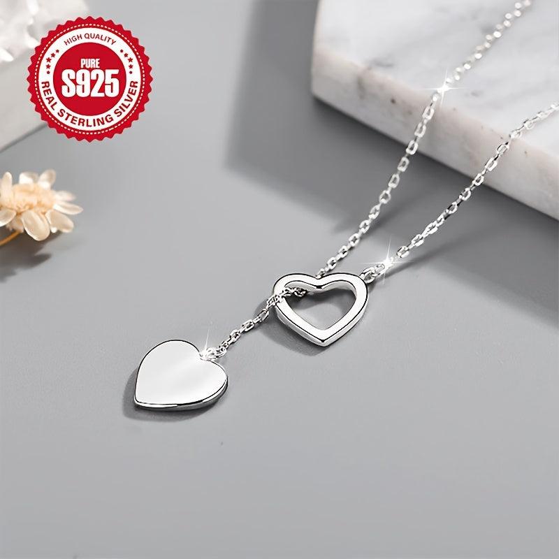Elevate your holiday style with this double heart pendant Y necklace made of hypoallergenic S925 silver. Features a heart-shaped tassel choker that adds a touch of elegance and versatility to any outfit.