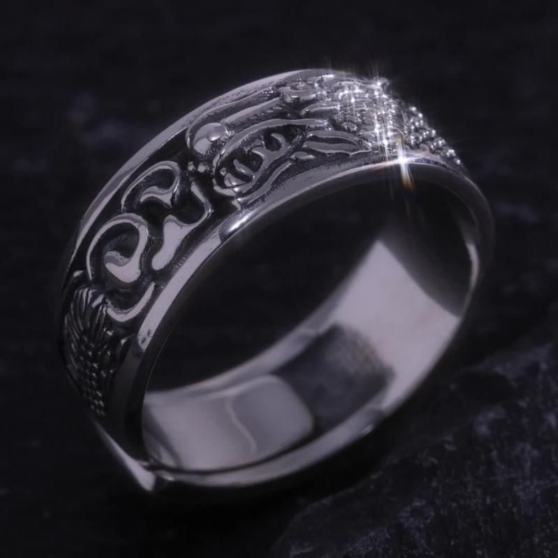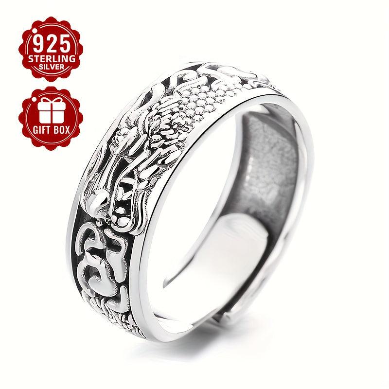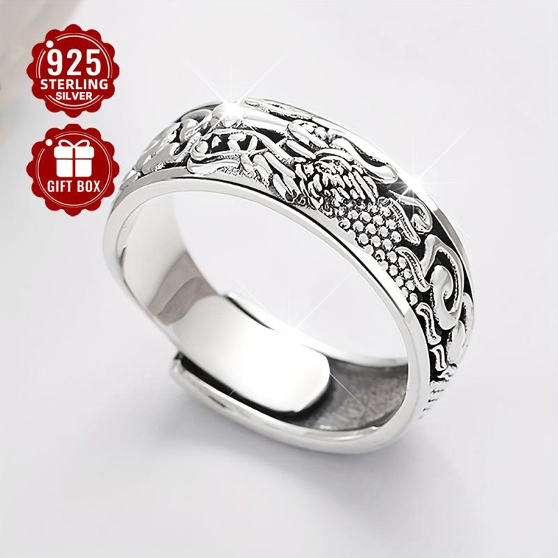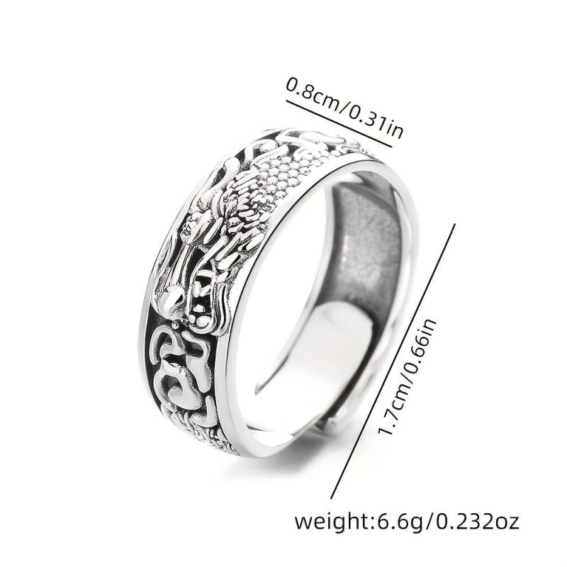 Add a touch of style with this bold dragon pattern ring made of sterling silver. Ideal for men and women to wear at parties and events.