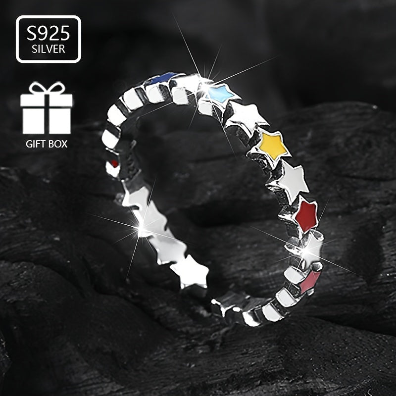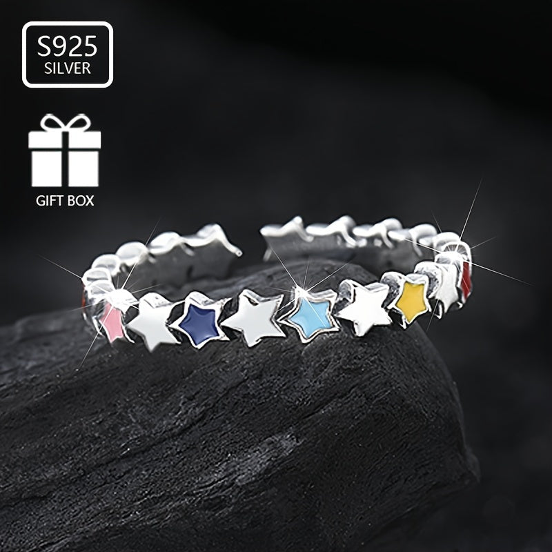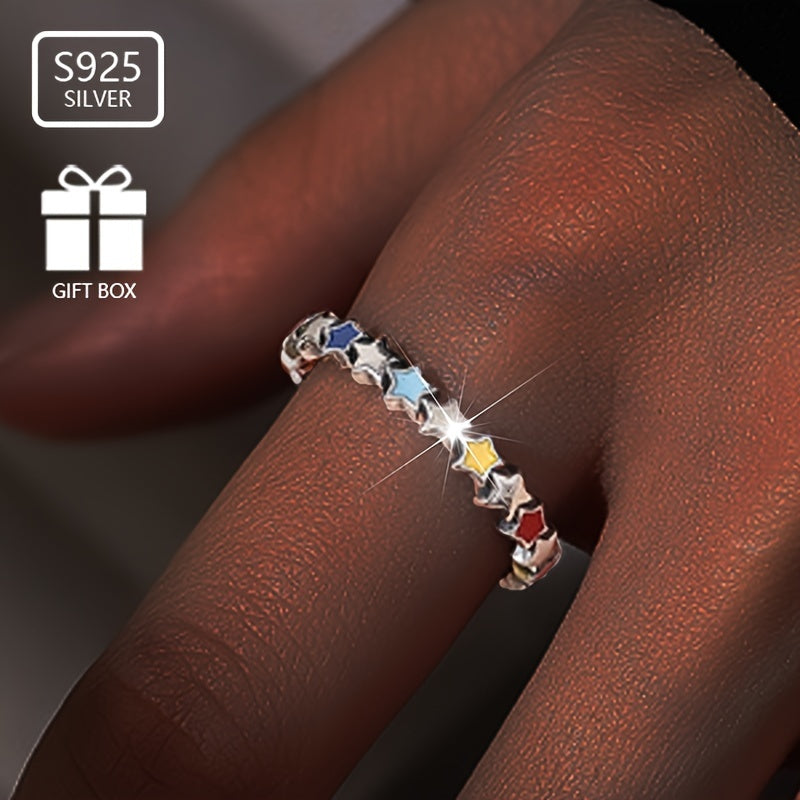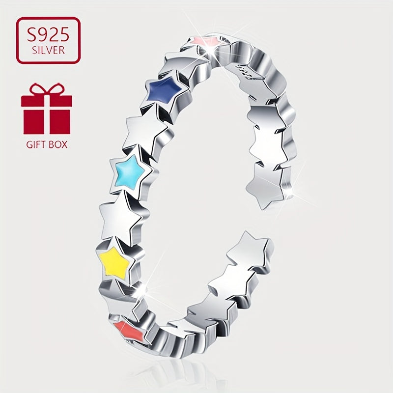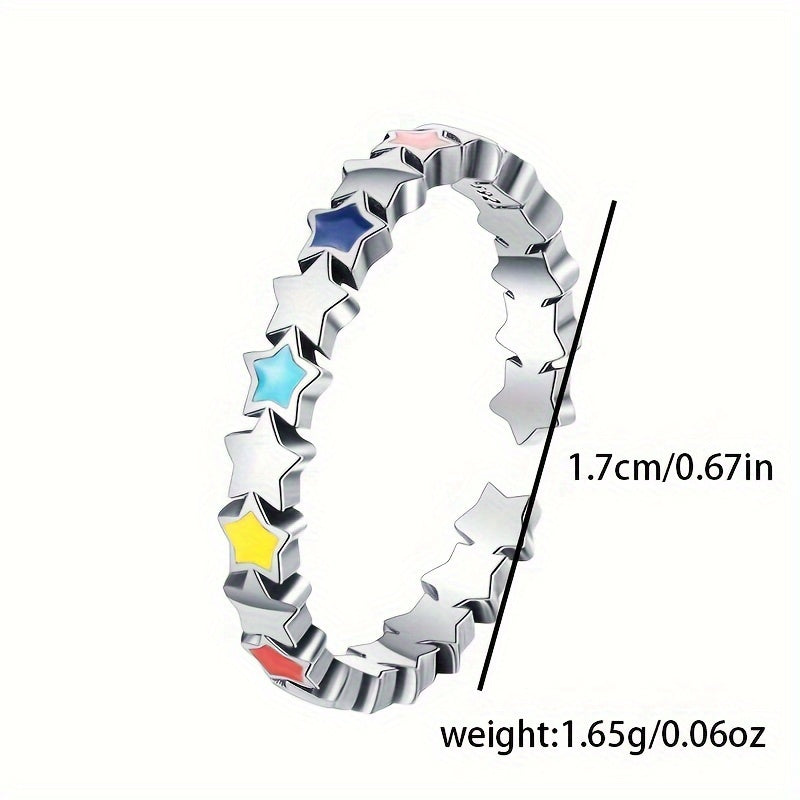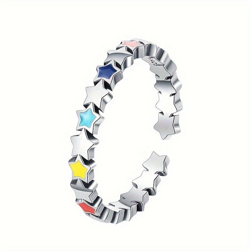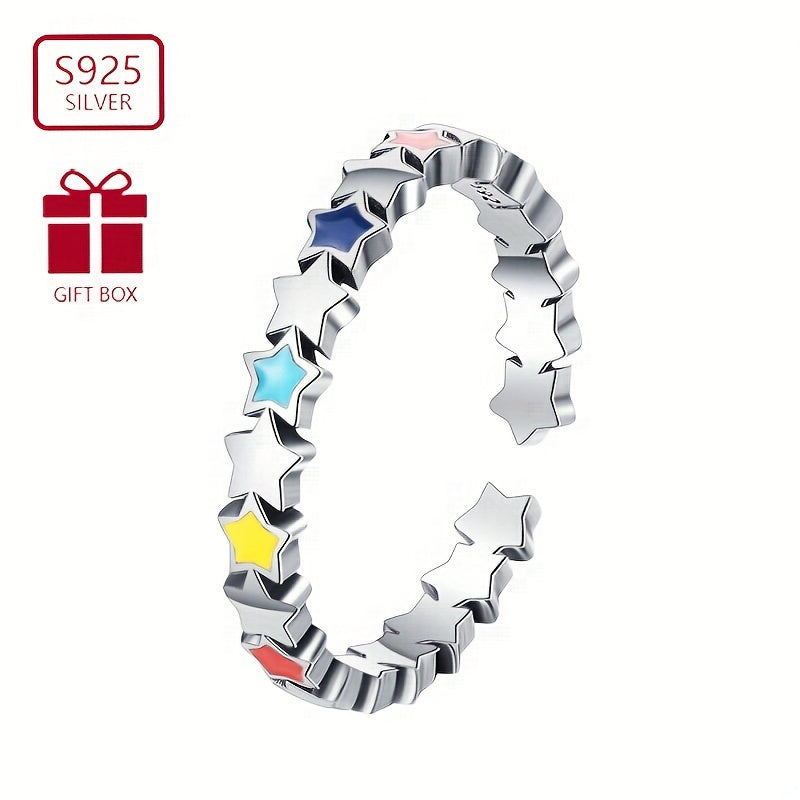This stylish enamel ring features colorful stars connected together. Made of 925 sterling silver, weighing approximately 1.65g. A perfect gift for female friends to give to their friends.