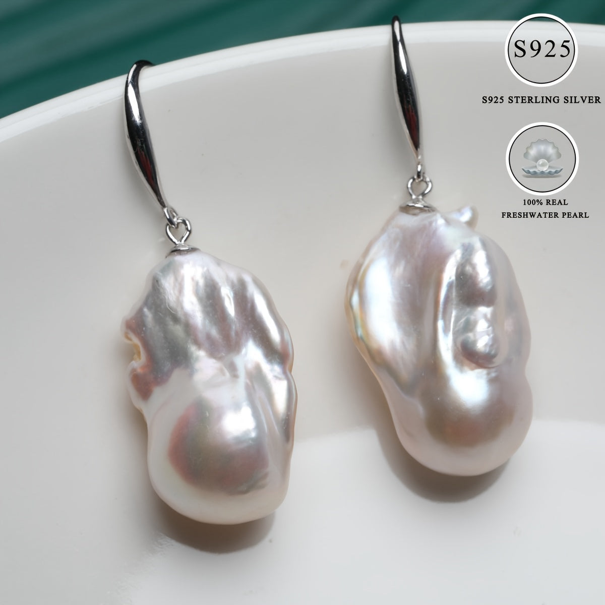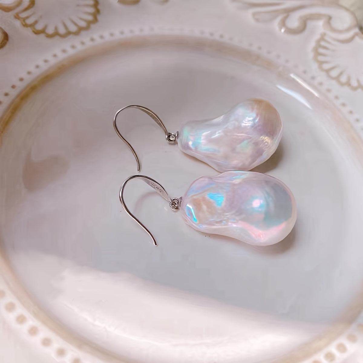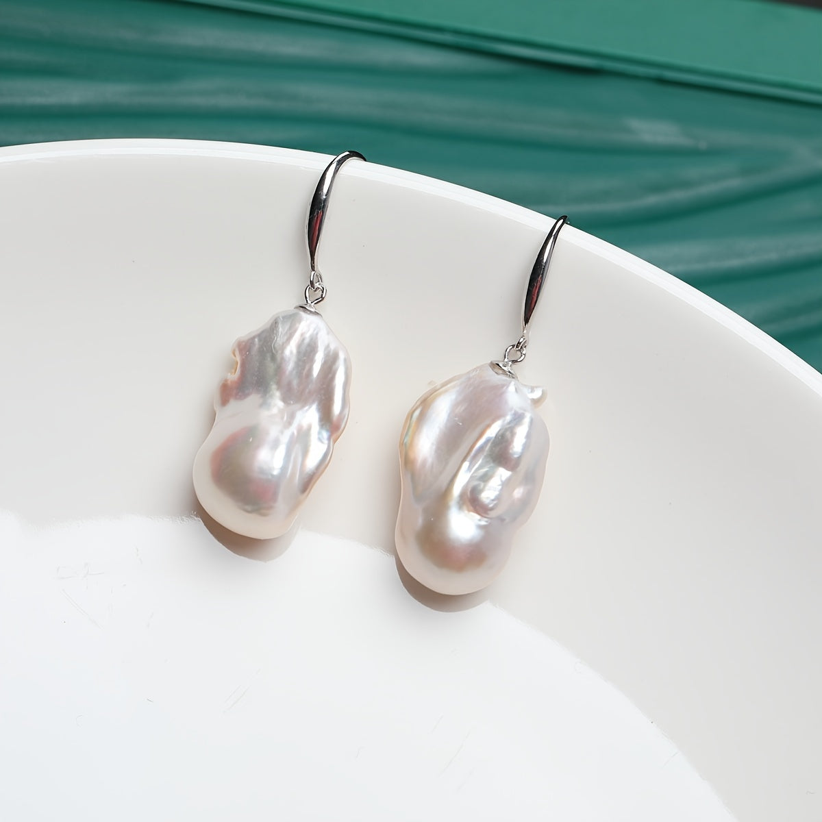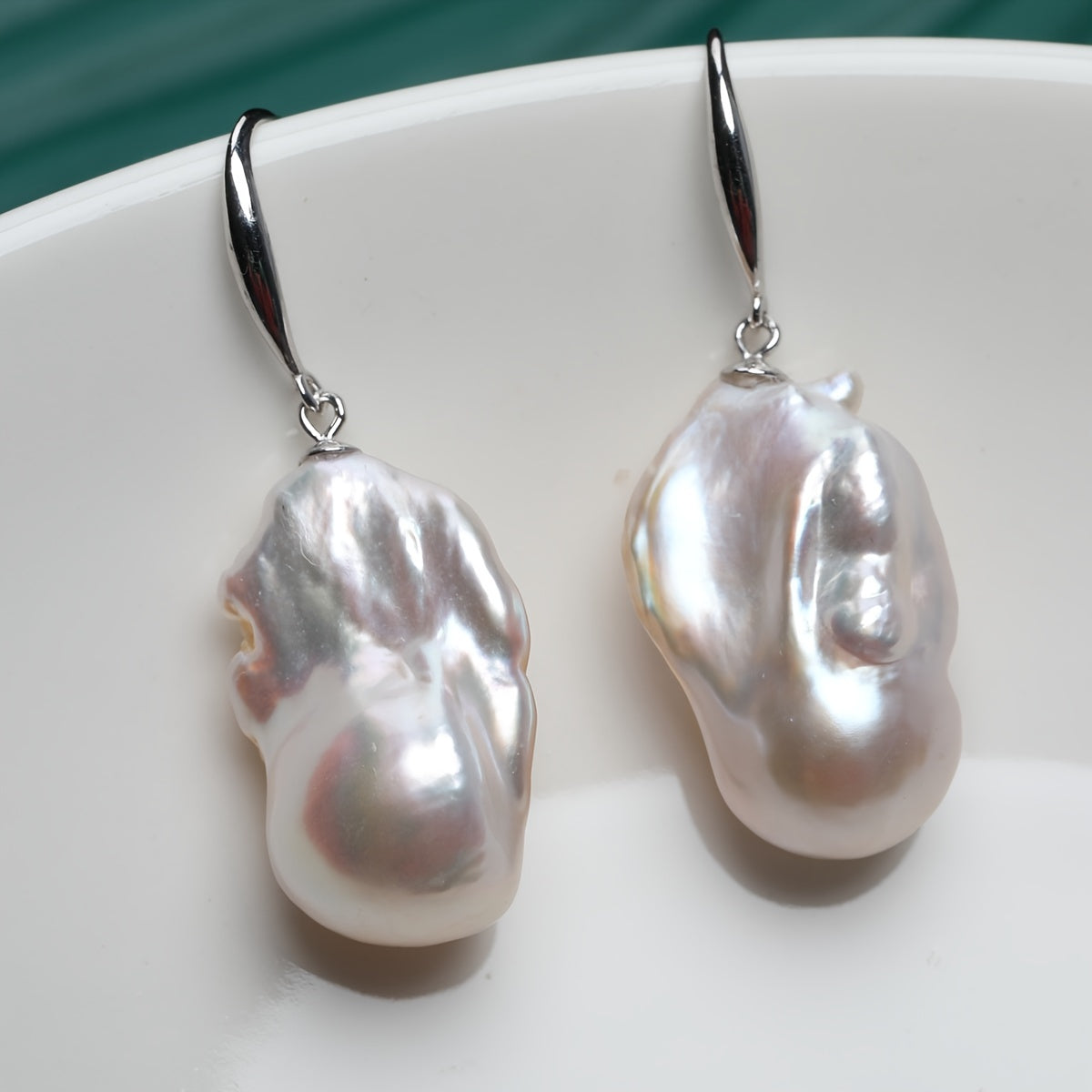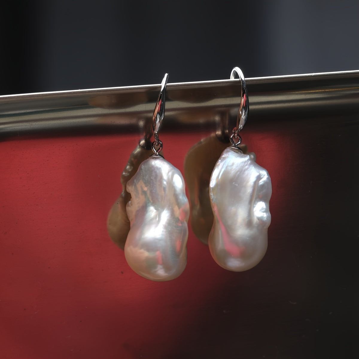 Elegant and stylish French baroque freshwater pearl drop earrings made with natural stones. Perfect for daily wear or as a gift.