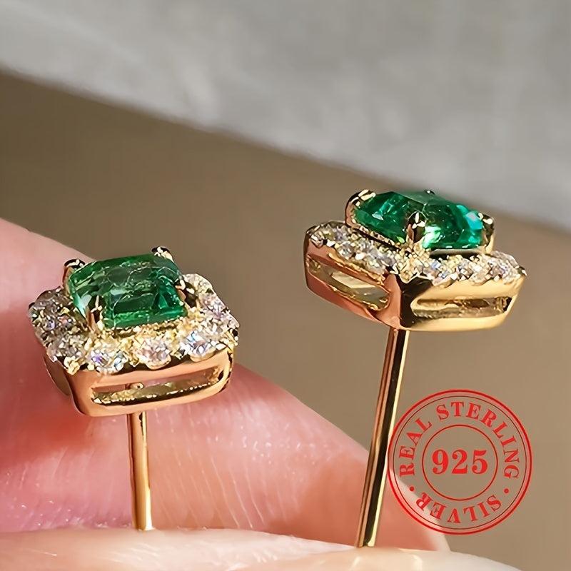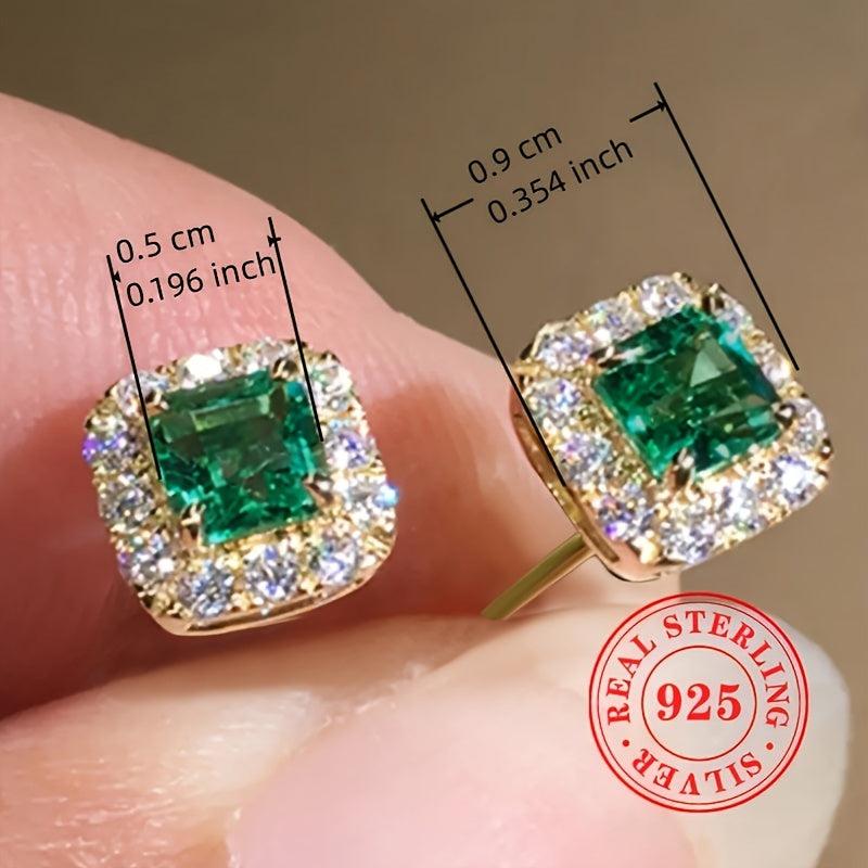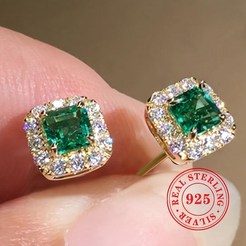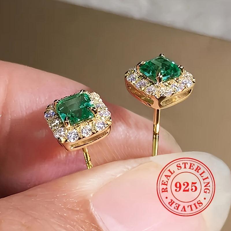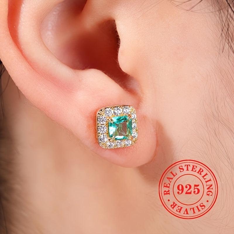 Sparkling green cubic zirconia earrings in sterling silver. Perfect for daily wear or parties. Features May birthstone design. Ideal for Mardi Gras celebrations.