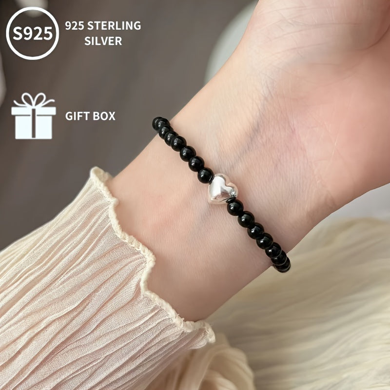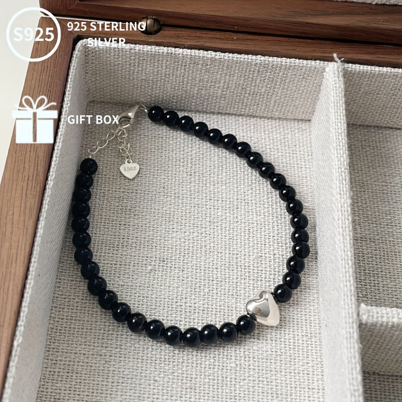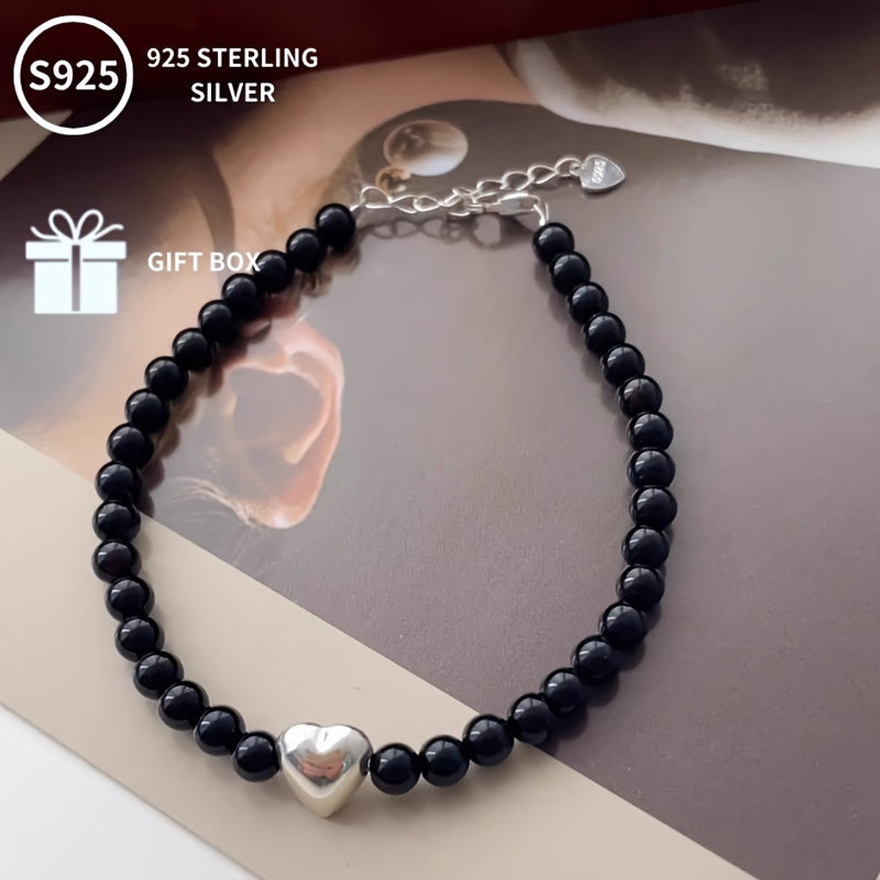 This delicate bracelet features a heart-shaped Agate gemstone set in S925 pure silver, weighing approximately 4-6g. It exudes a fresh and sweet breeze, making it a perfect gift for Mother's Day or any celebration.