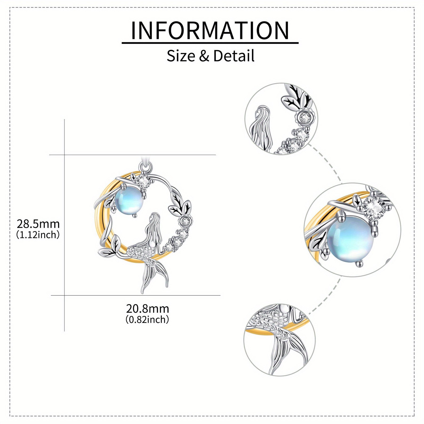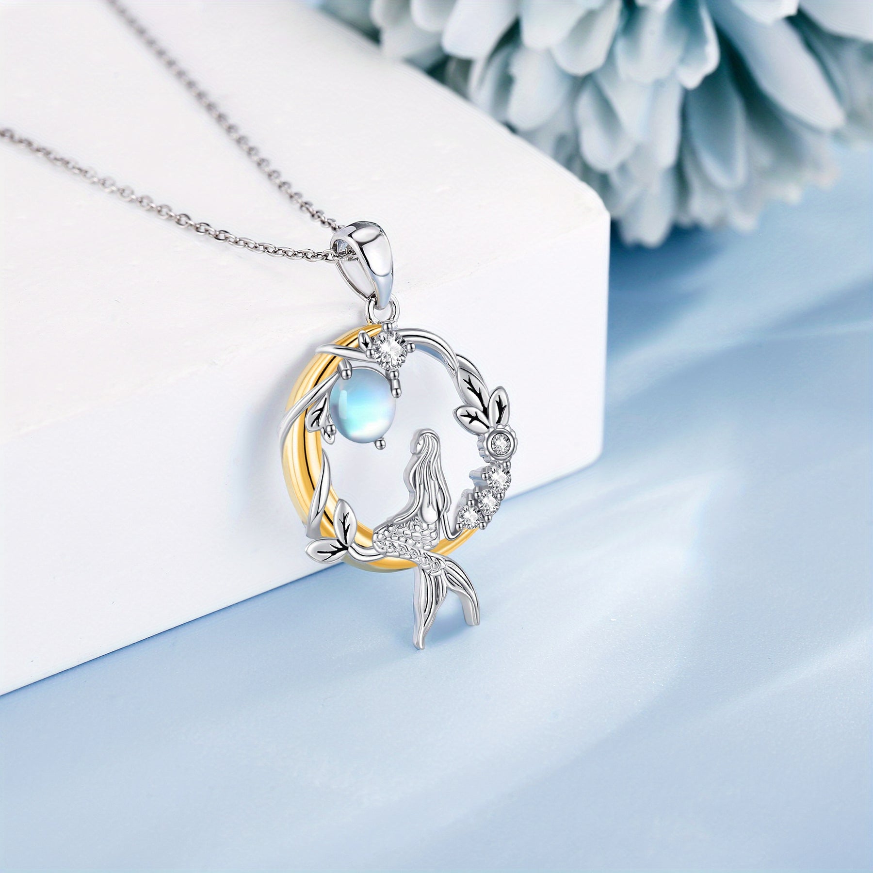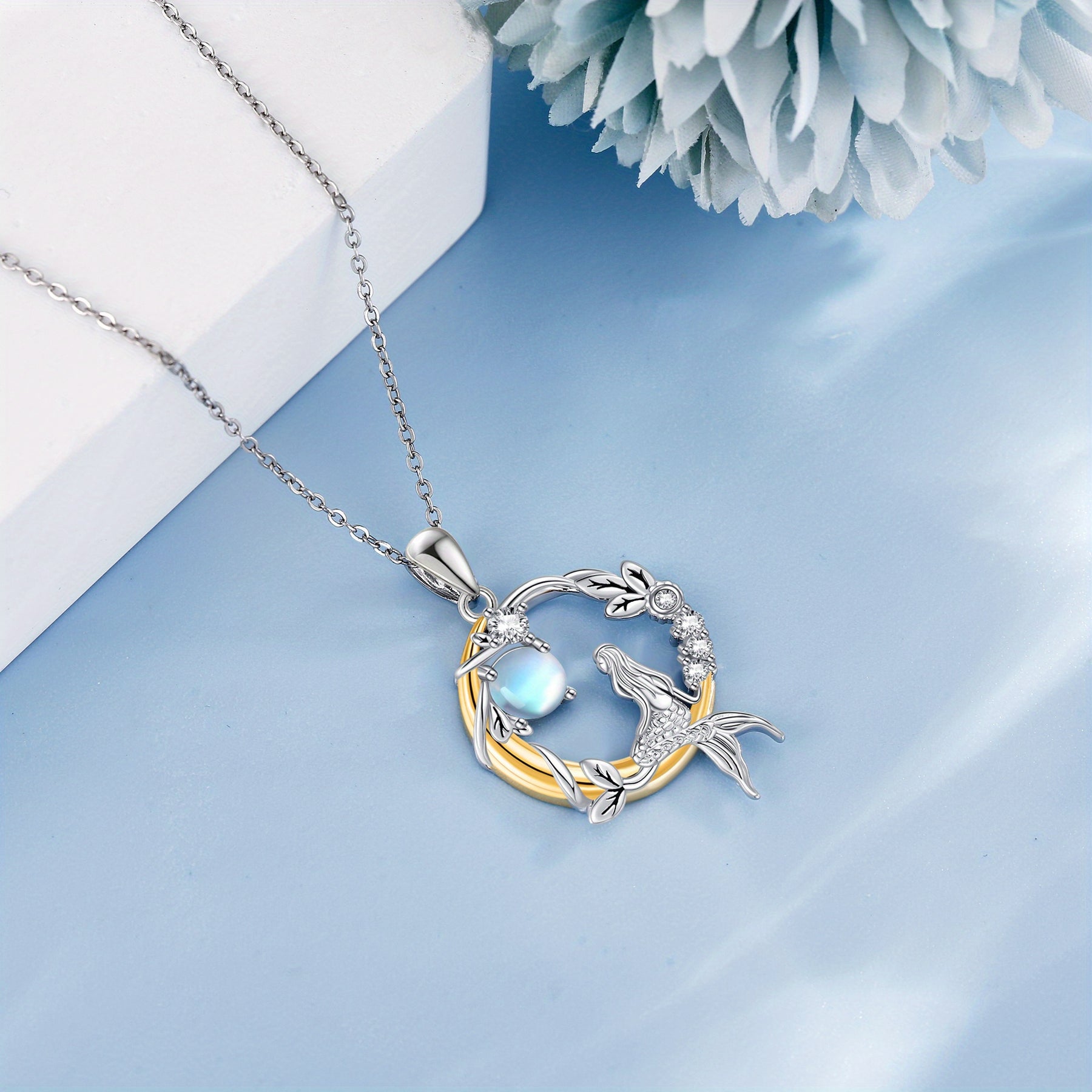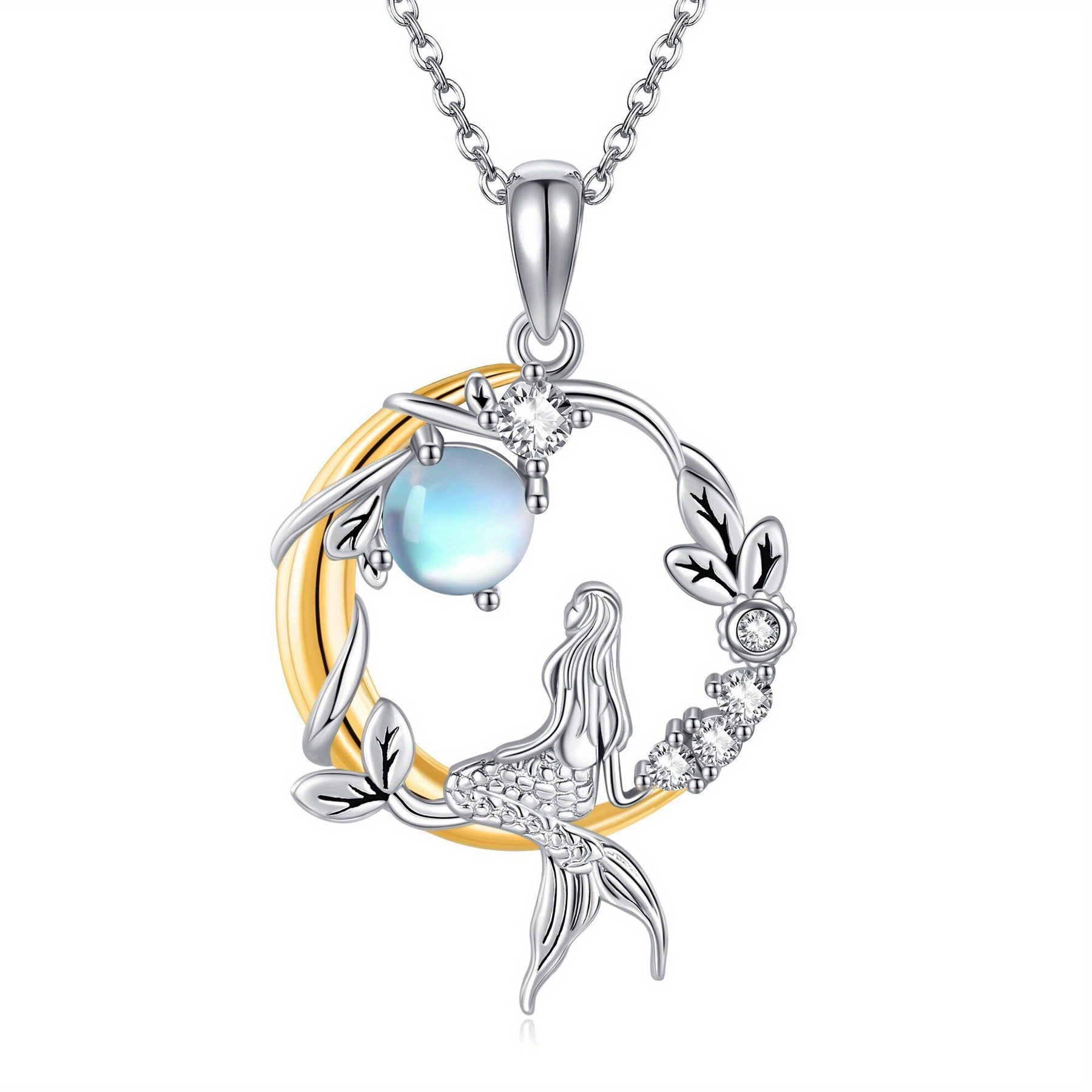 This enchanting mermaid pendant necklace features a moonstone gemstone set in 925 sterling silver. Perfect for mermaid lovers and those who appreciate mystical jewelry.