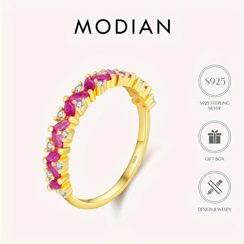 This exquisite ring by Modian is crafted from 925 sterling silver and adorned with stunning cubic zirconia stones. Its vintage-inspired design makes it perfect for both parties and everyday wear.