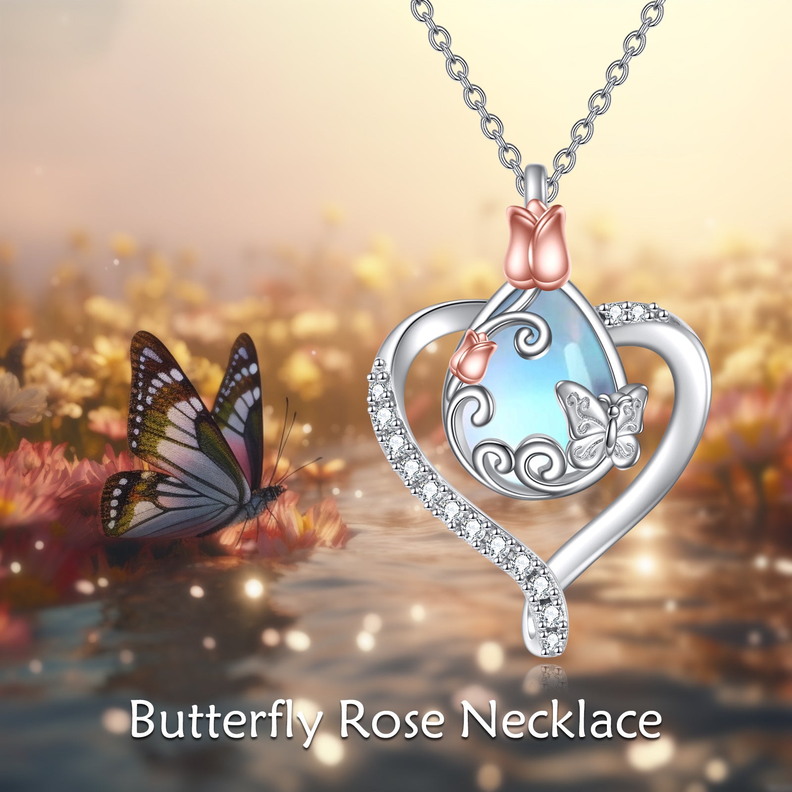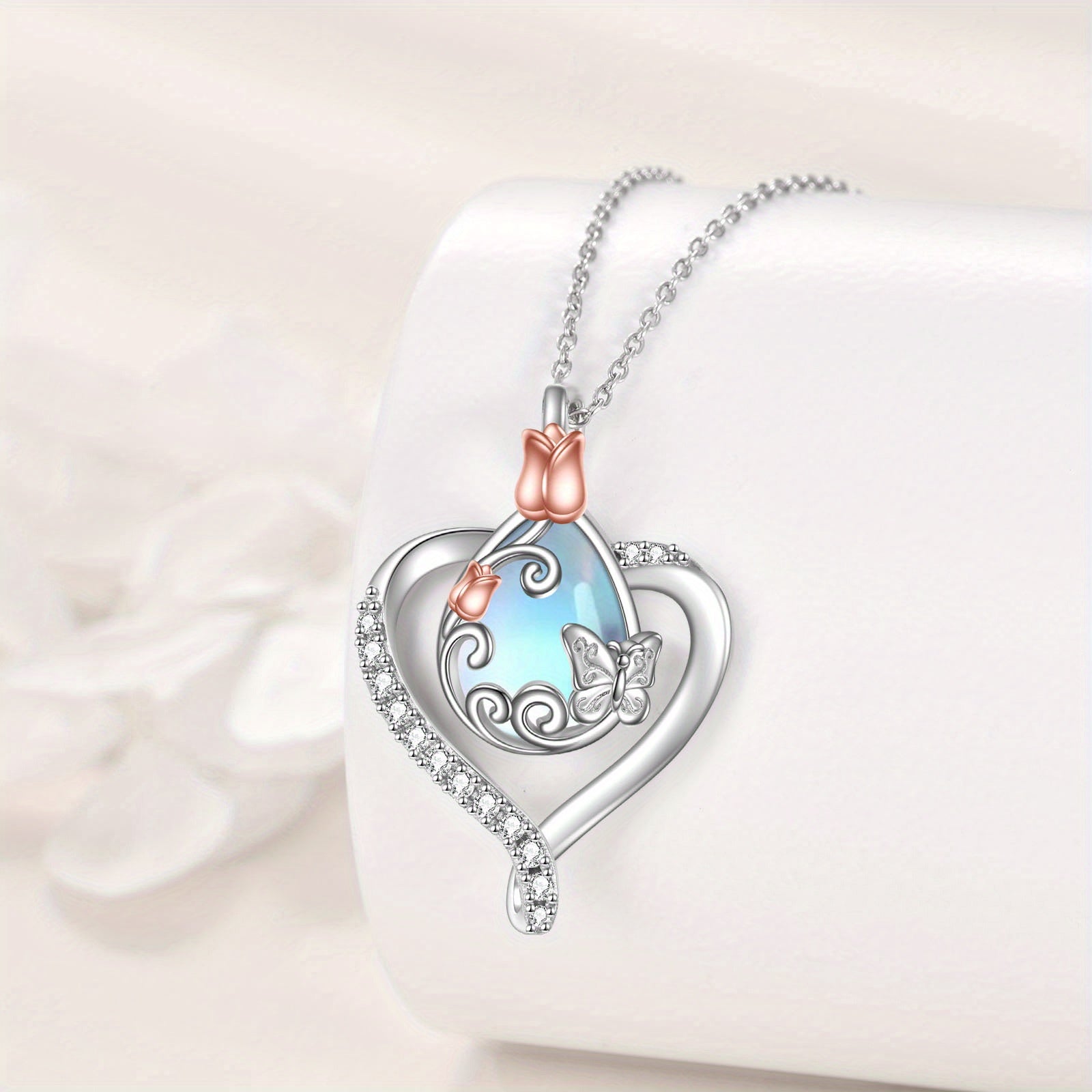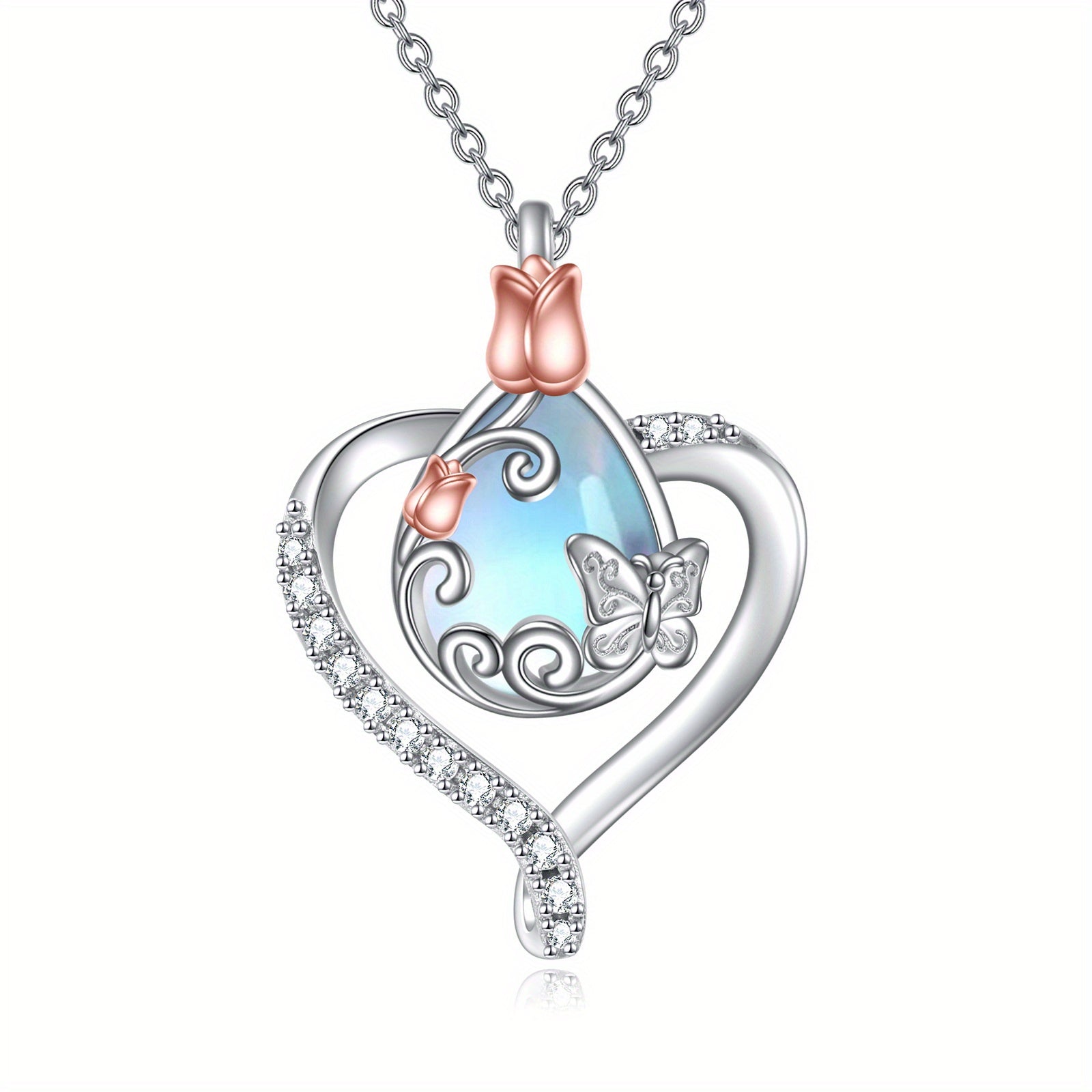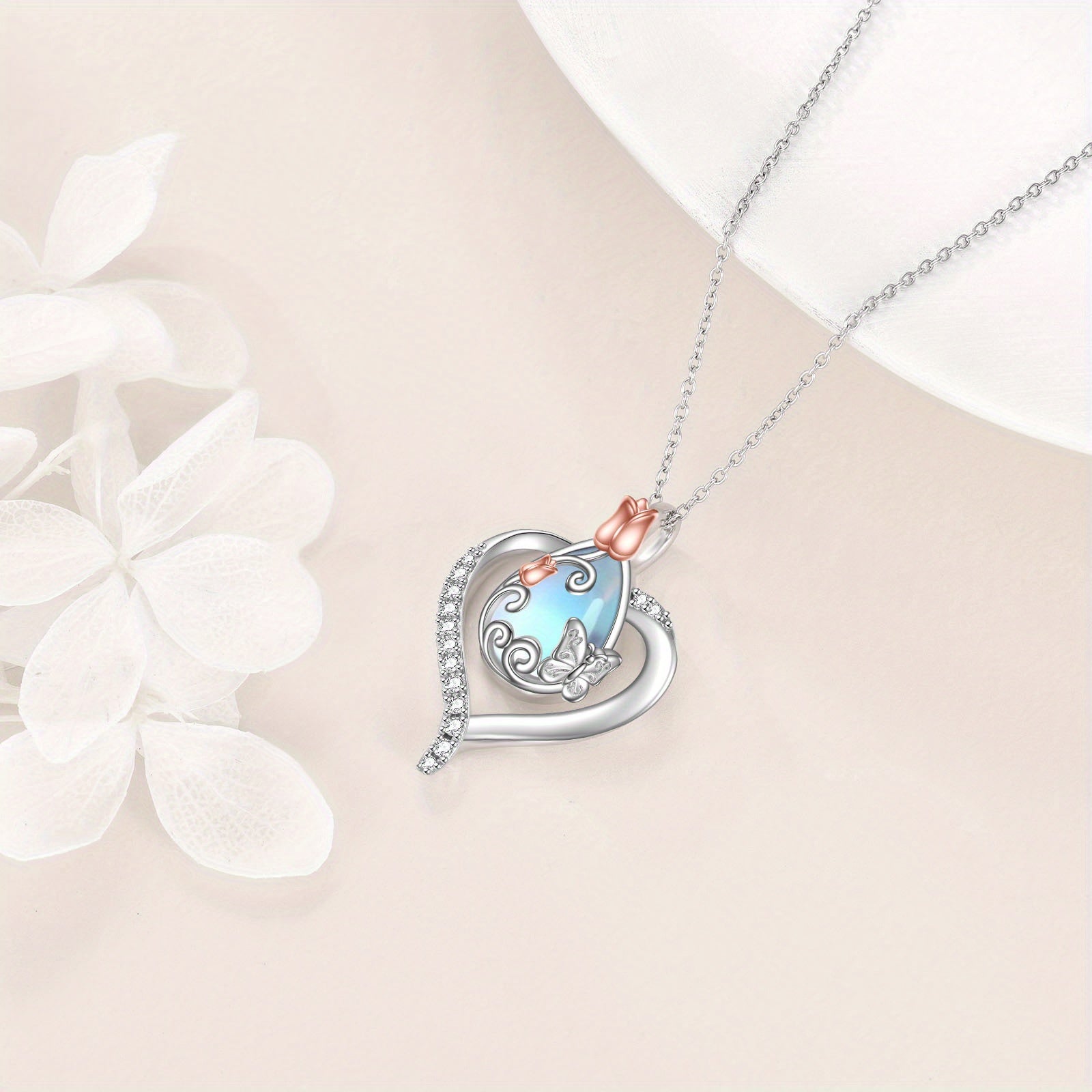 Enhance your style with this stunning Moonstone Butterfly Necklace crafted from 925 Sterling Silver. The intricate design features a shimmering love heart pendant that radiates elegance and charm.