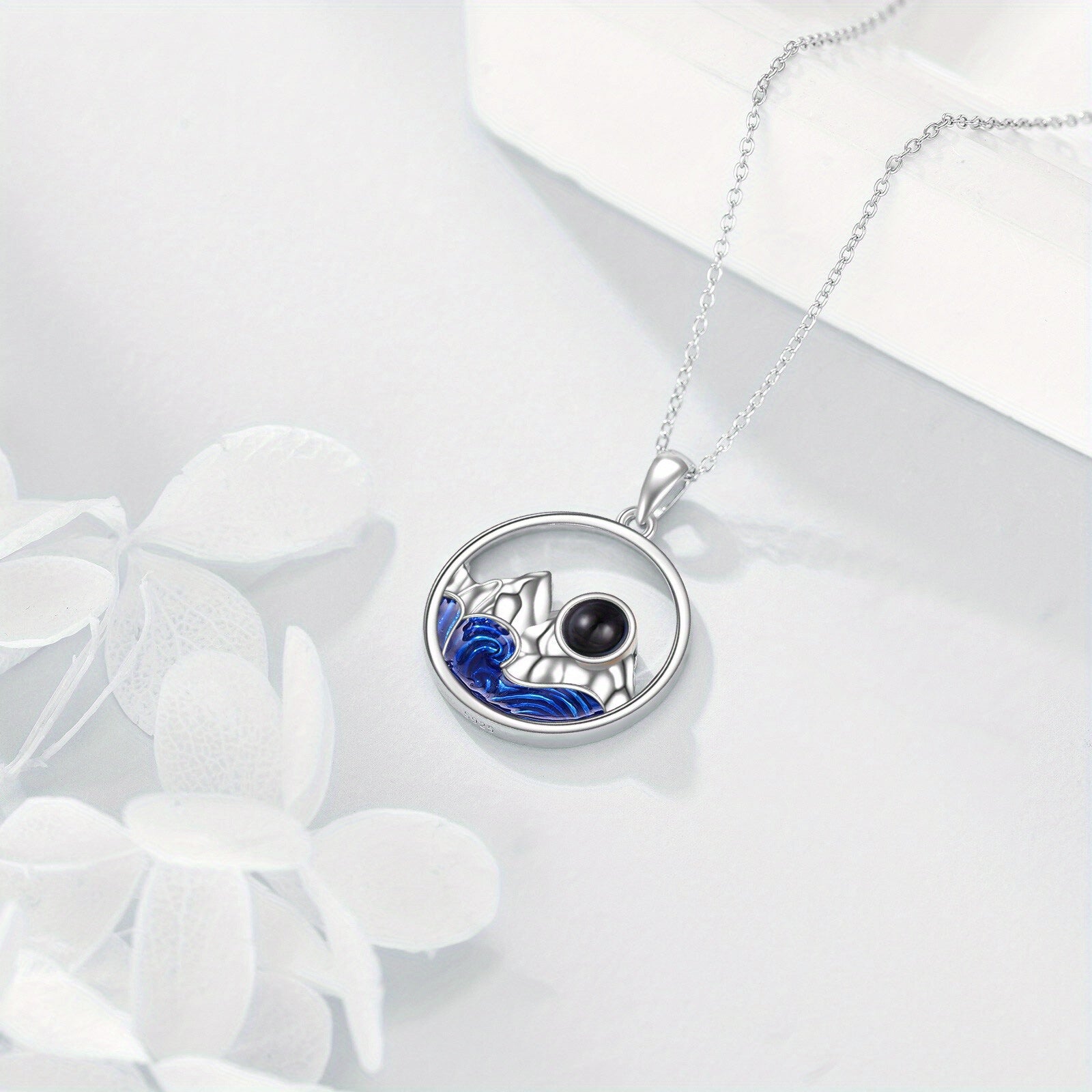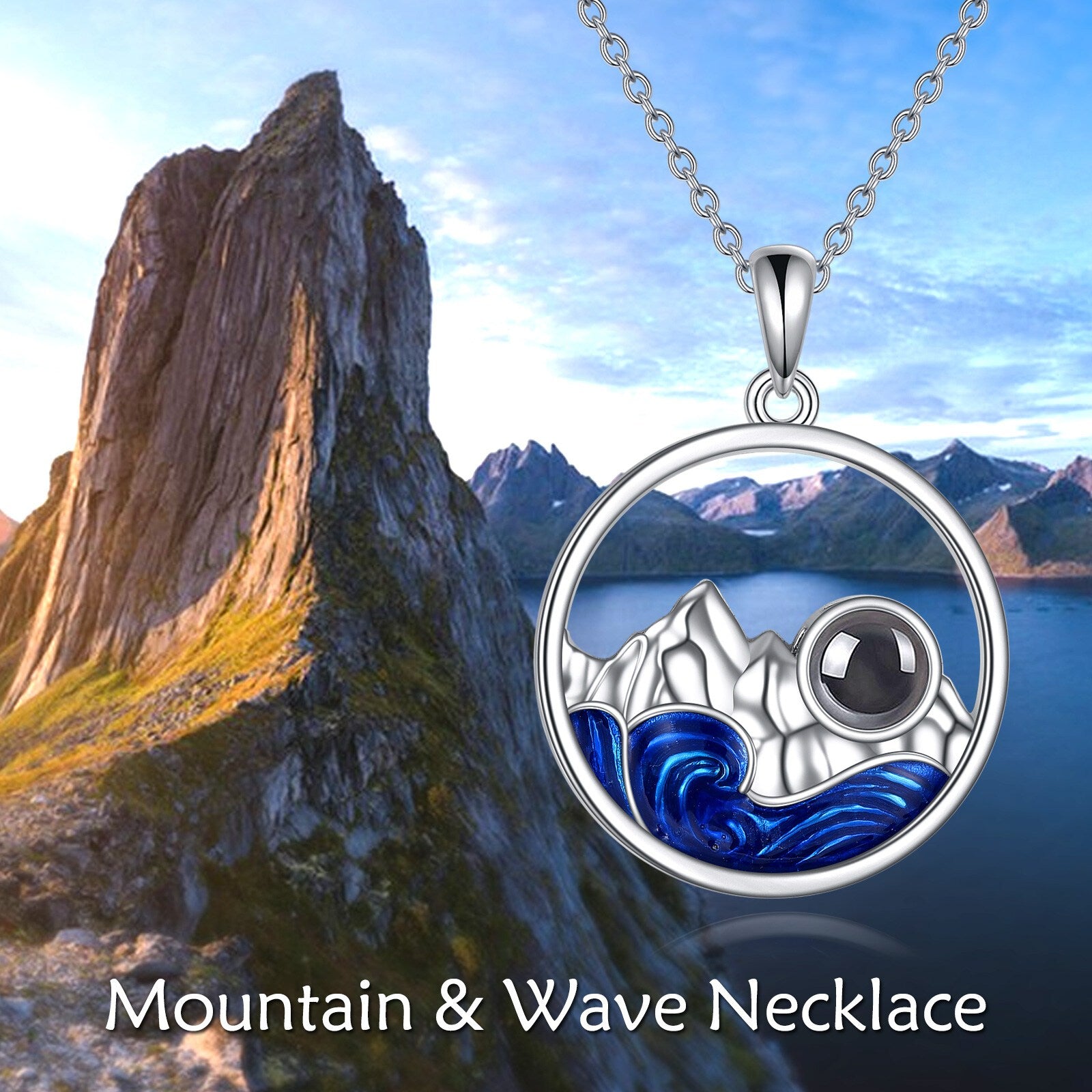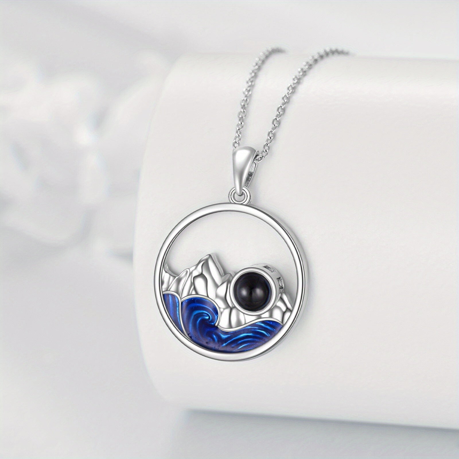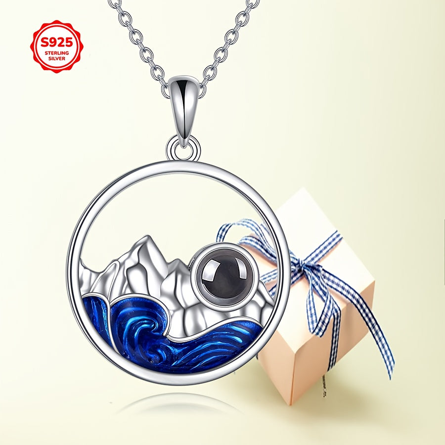 This stunning necklace features a mountain and ocean design crafted from 925 sterling silver. Express your love in 100 languages with this unique piece. Perfect gift for women.