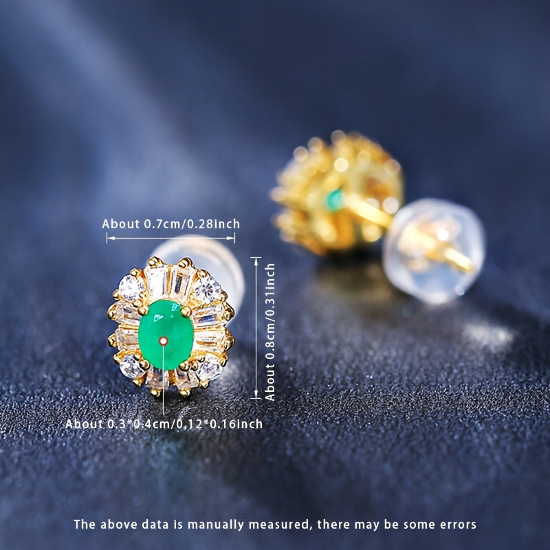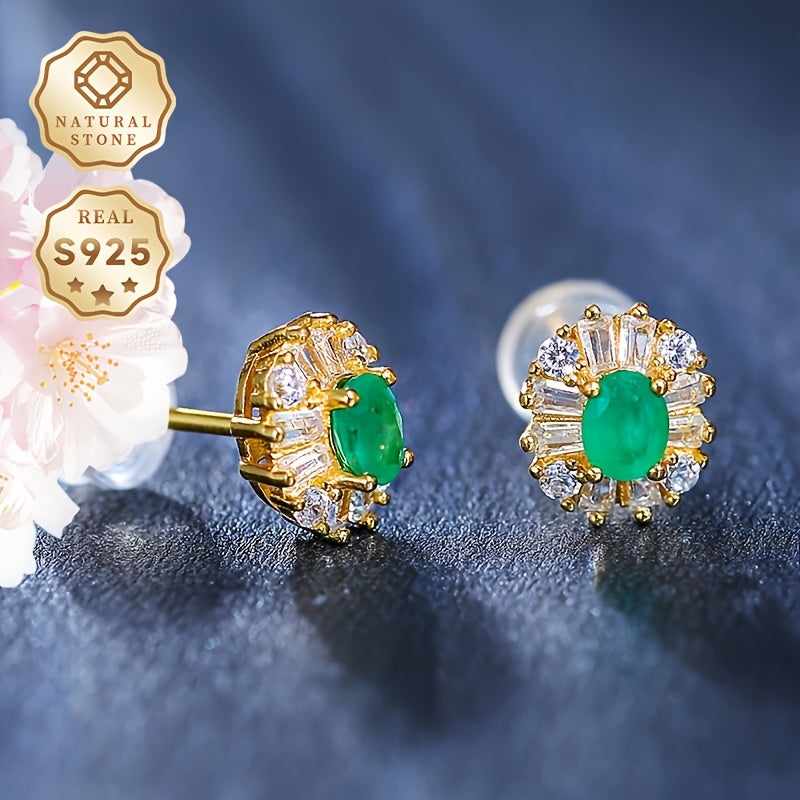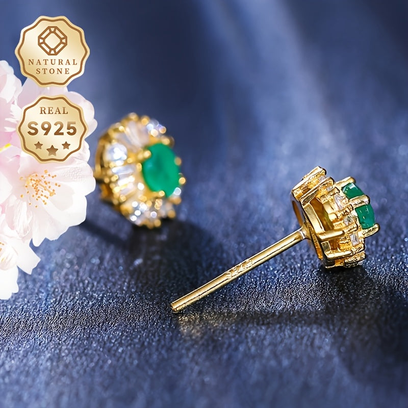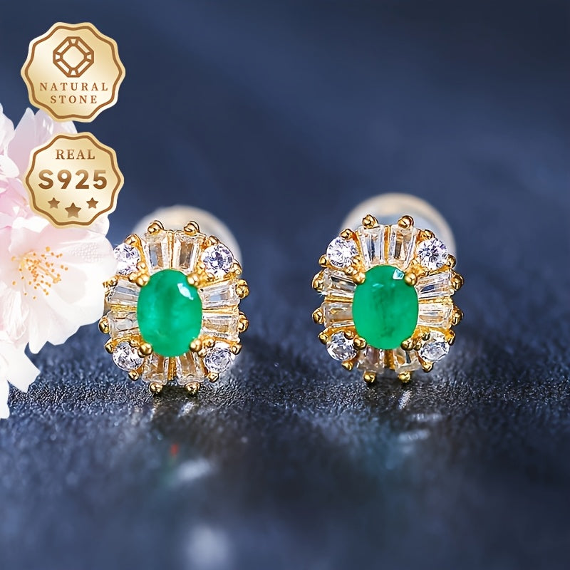 These vintage 925 sterling silver stud earrings feature beautiful natural green gemstones. They have no plating and are perfect for daily wear or as a gift. The adjustable design makes them suitable for all seasons.