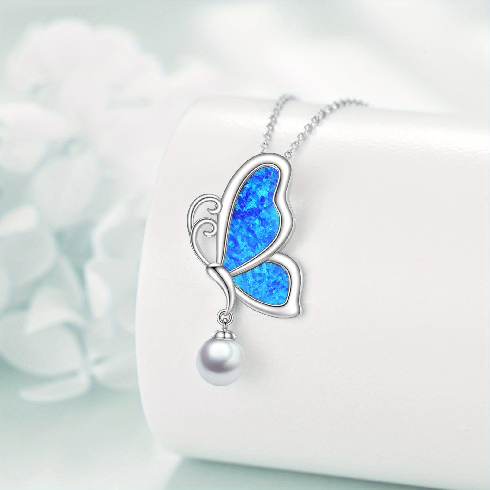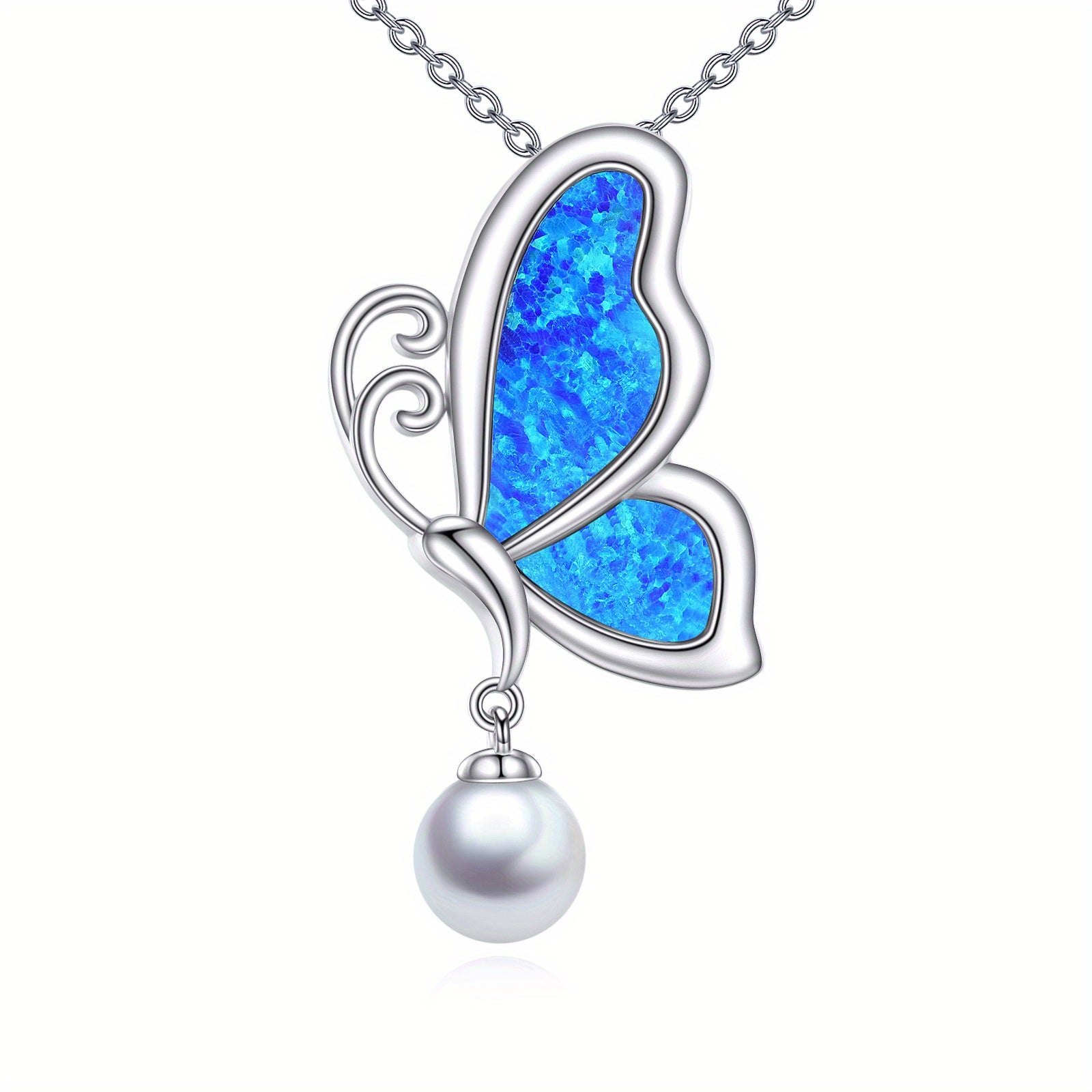 This stunning butterfly necklace features a beautiful opal butterfly pendant accented with a lustrous freshwater pearl. A perfect gift for mothers, birthdays, girlfriends, or special occasions.