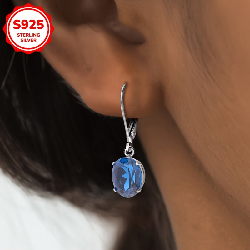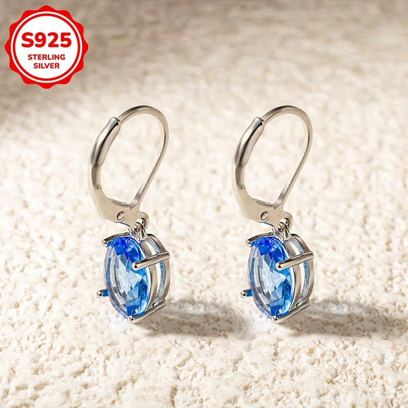 These stunning oval cubic zirconia drop earrings are made of 925 sterling silver, making them hypoallergenic and perfect for daily wear or parties. They weigh 2.3g and have a timeless design that will complement any outfit.