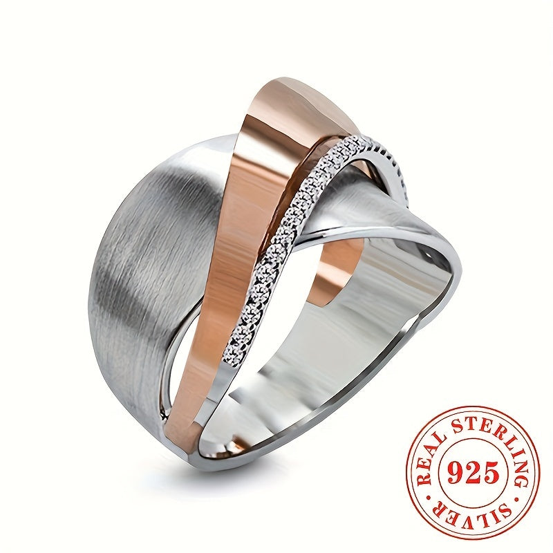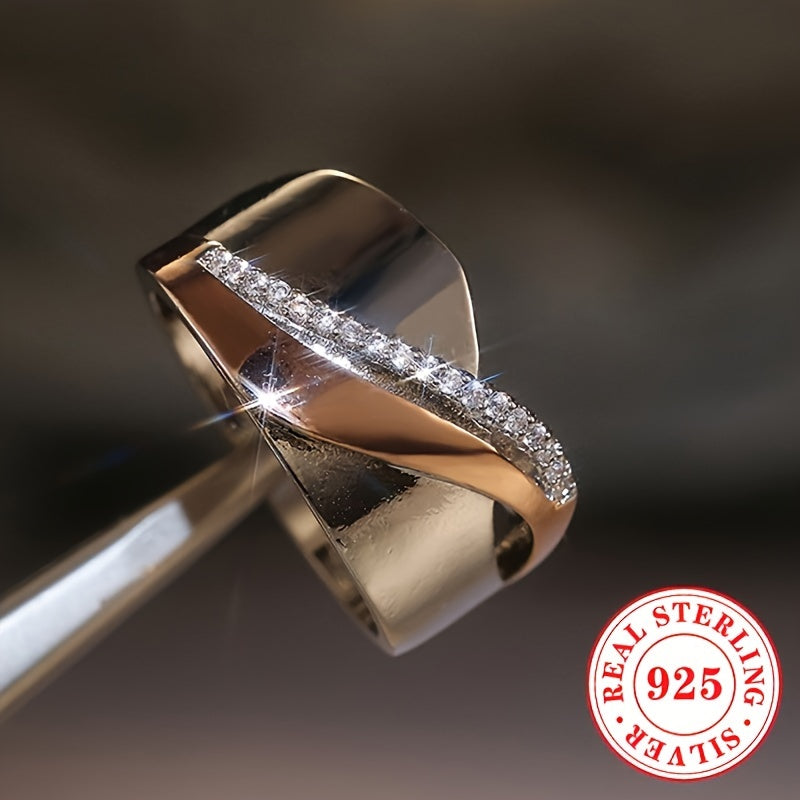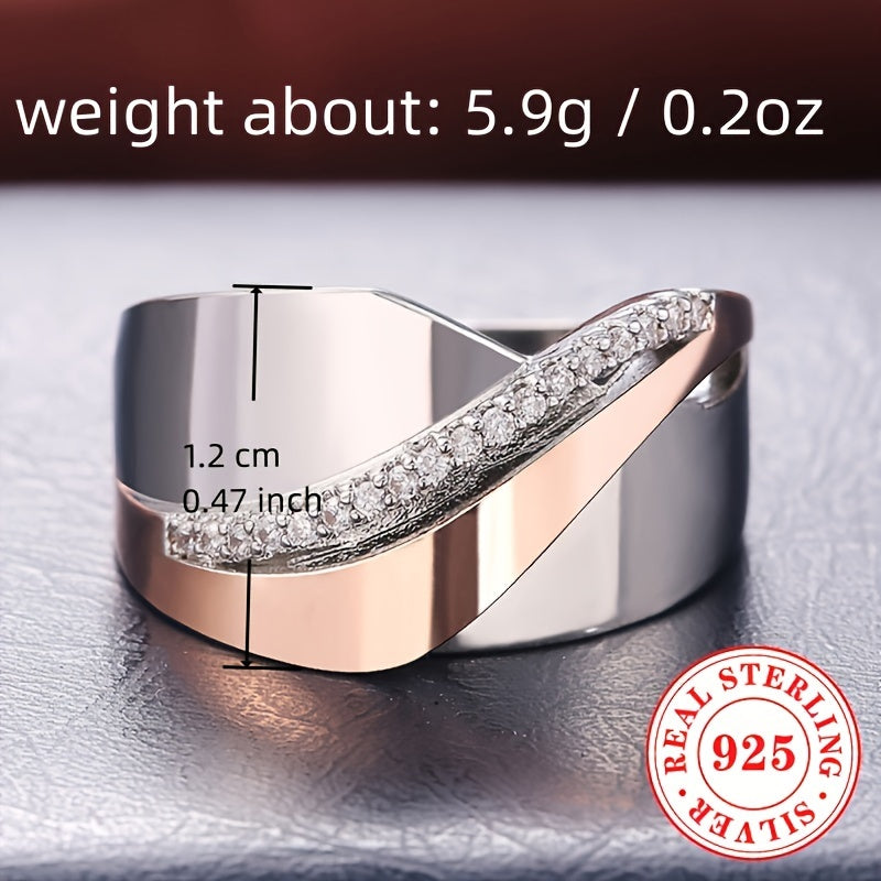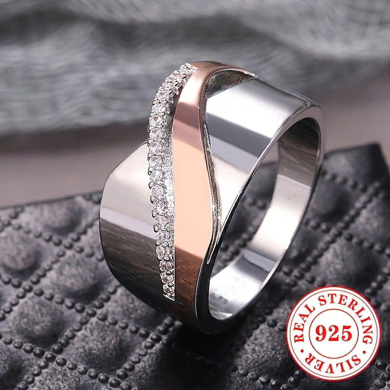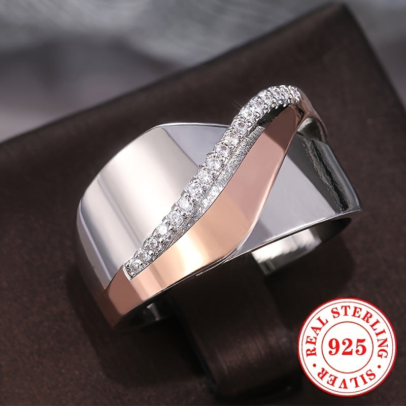 This wide face ring is crafted from 925 pure silvery metal and features sparkling zirconia stones. Perfect for parties or daily casual wear.