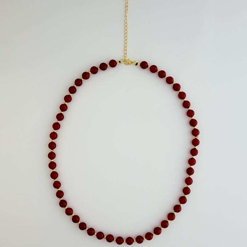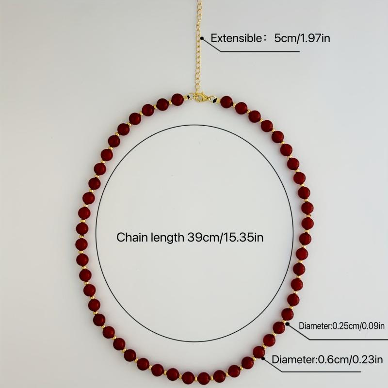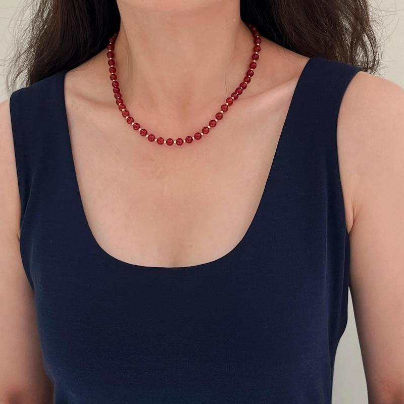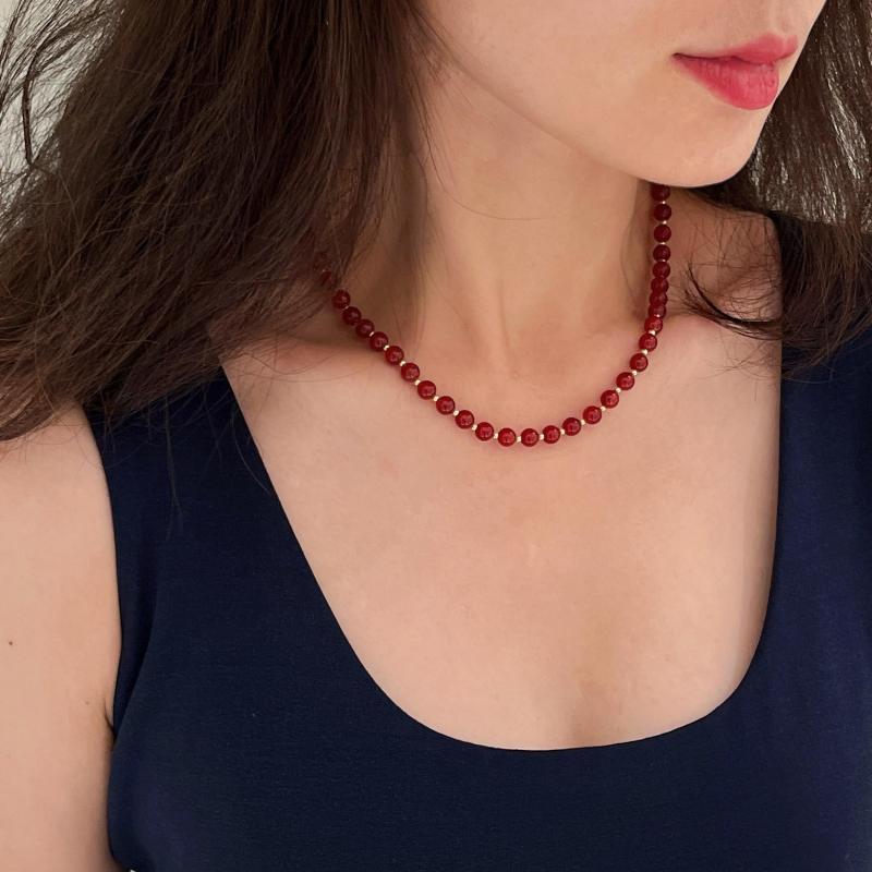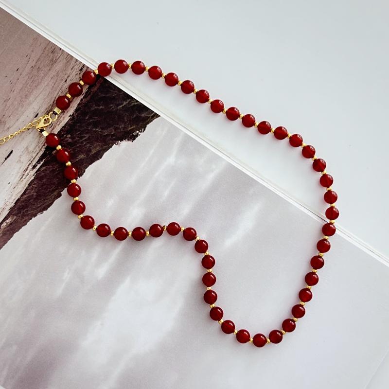 French romantic beaded necklace with red agate, S925 sterling silver, and golden beads. Perfect for festivals, birthdays, parties, and Christmas.
