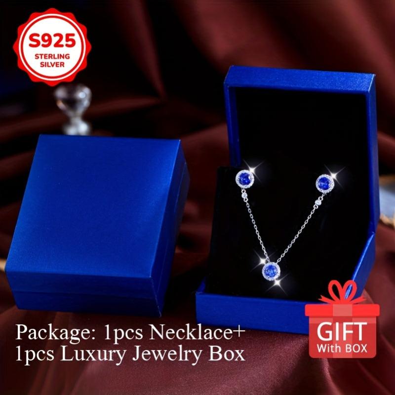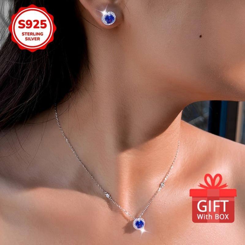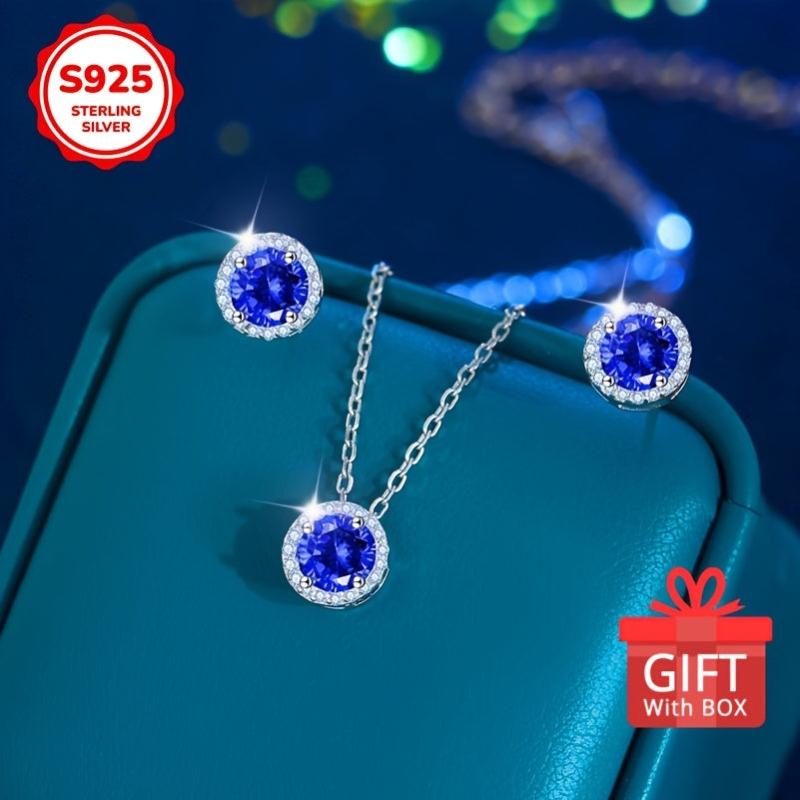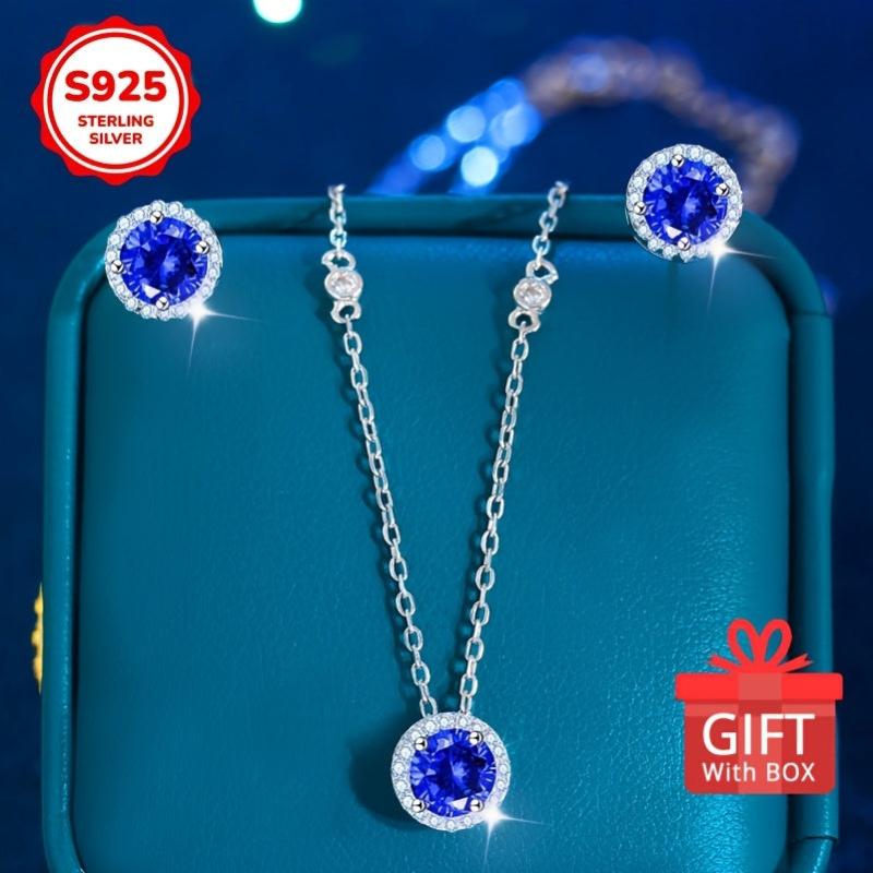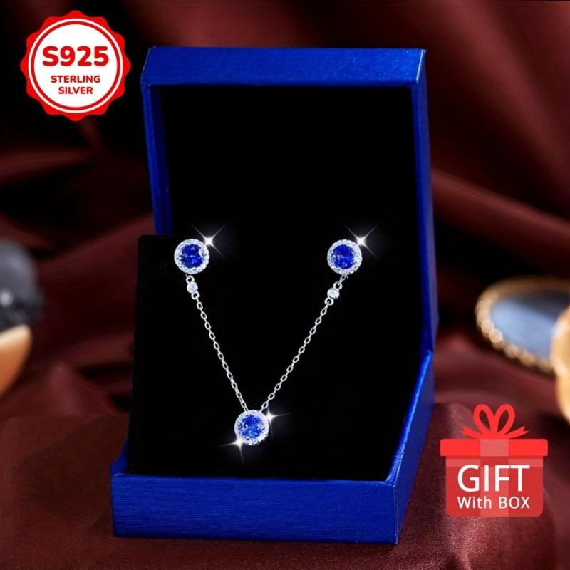 This elegant jewelry set includes 3 earrings and a necklace, all inlaid with synthetic Tanzanite. Perfect for evening parties, this set is made of high-quality 925 sterling silver.