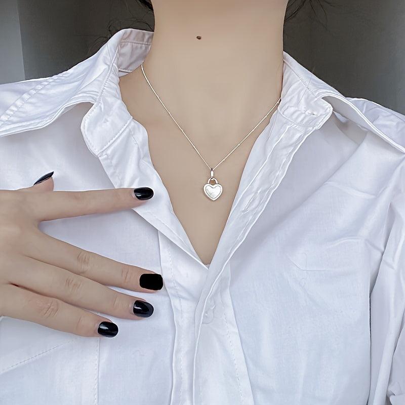 This S925 pure silver necklace features a double-sided agate shell design that exudes personality. The lightweight chain is perfect for showcasing on your clavicle.
