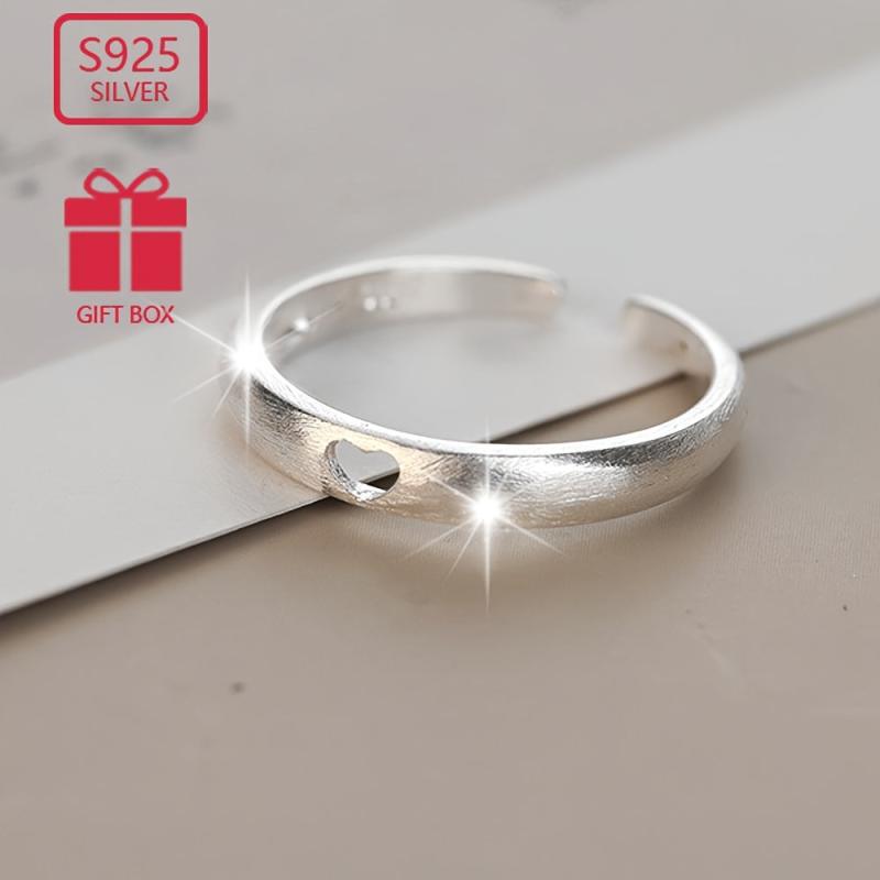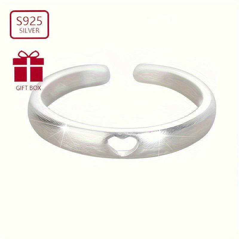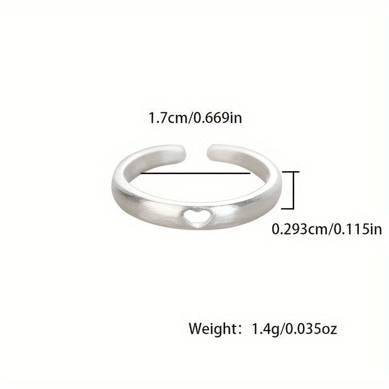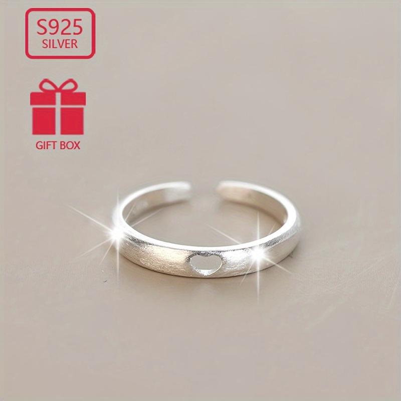 Stunning S925 silvery heart hollow ring designed for women with a frosted love finish. Adjustable opening for a perfect fit.