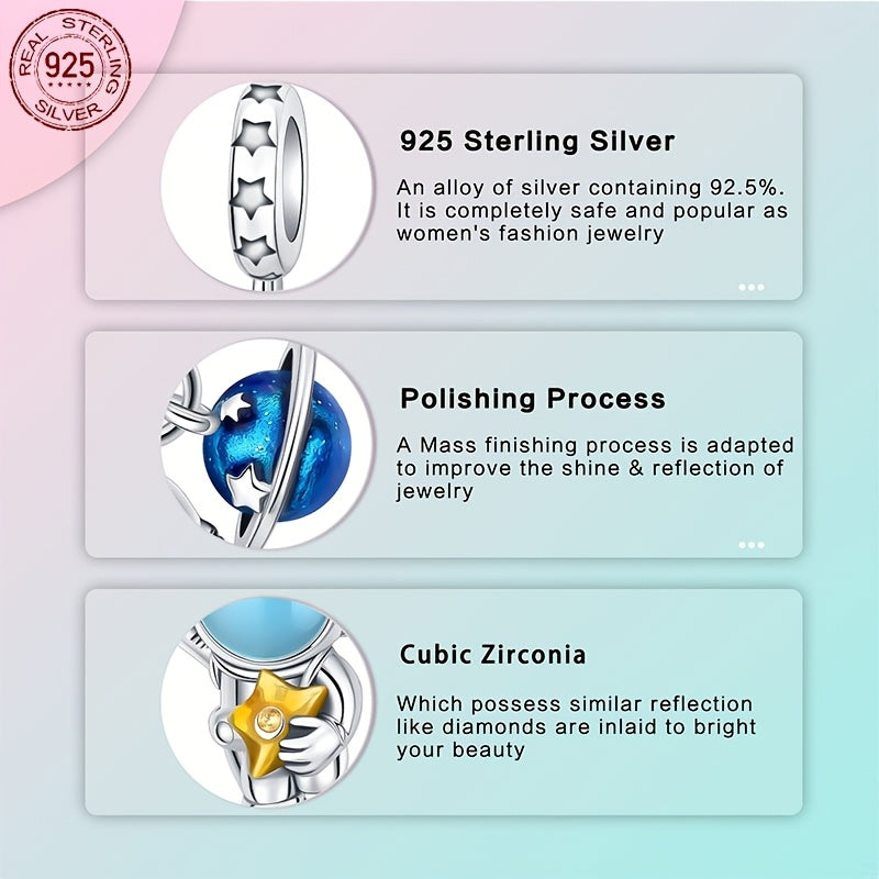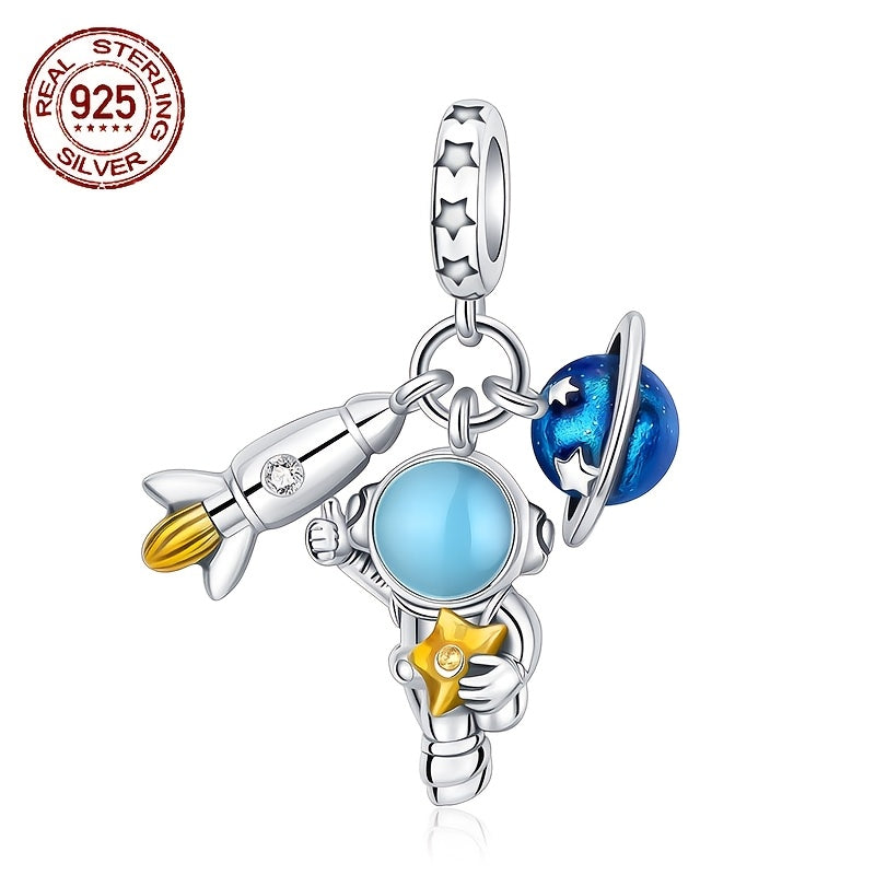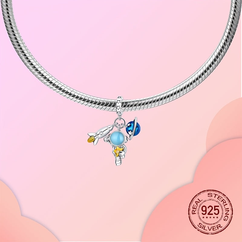 Add a touch of cosmic charm to your daily or party look with these S925 pure silver earrings featuring a rocket, earth, astronaut, and star design. Perfect for space enthusiasts!