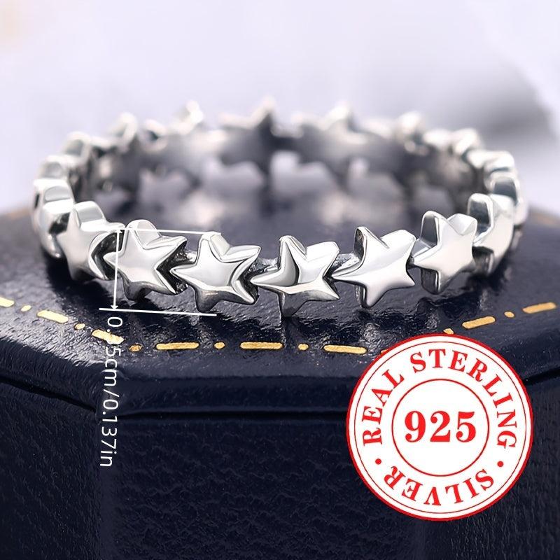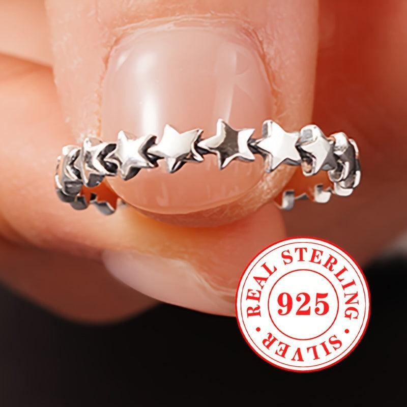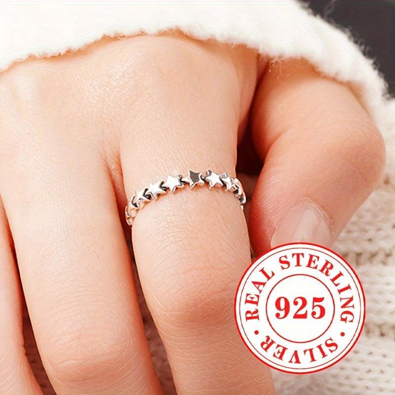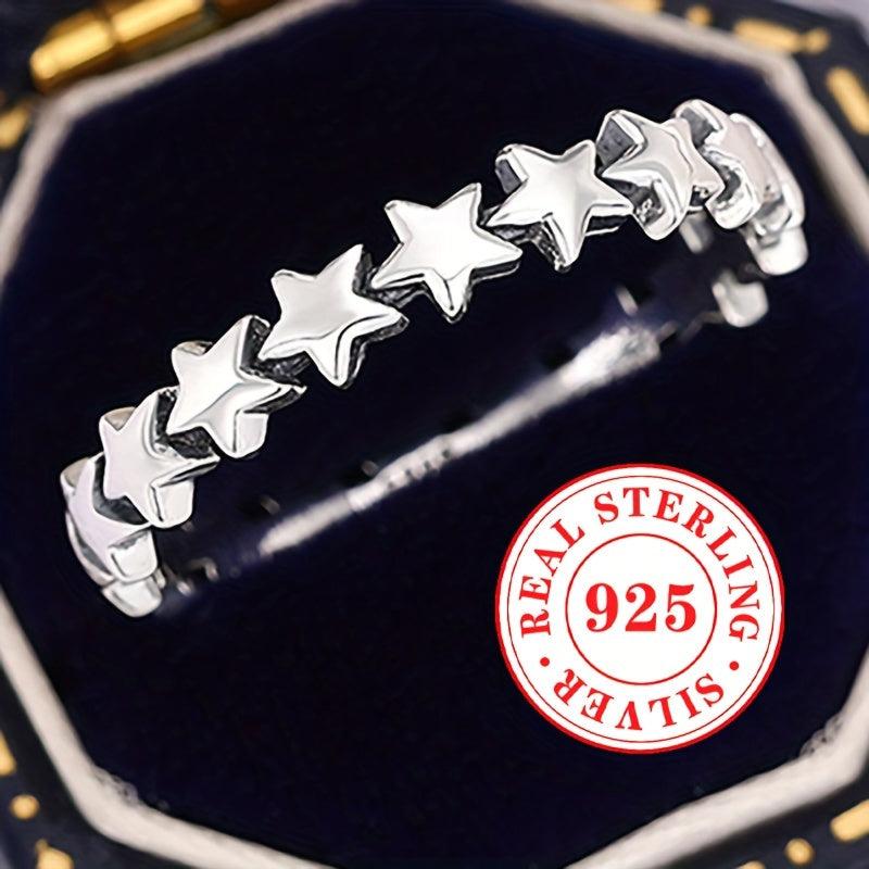 This S925 pure silvery star ring is perfect for both men and women to wear at parties or casually. It adds a touch of elegance to any outfit.